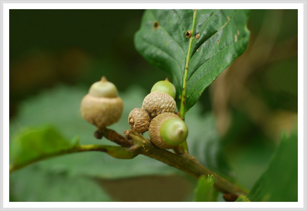 깍정이는 긴 돌기 모양의 비늘 잎으로 도토리를 감싸며