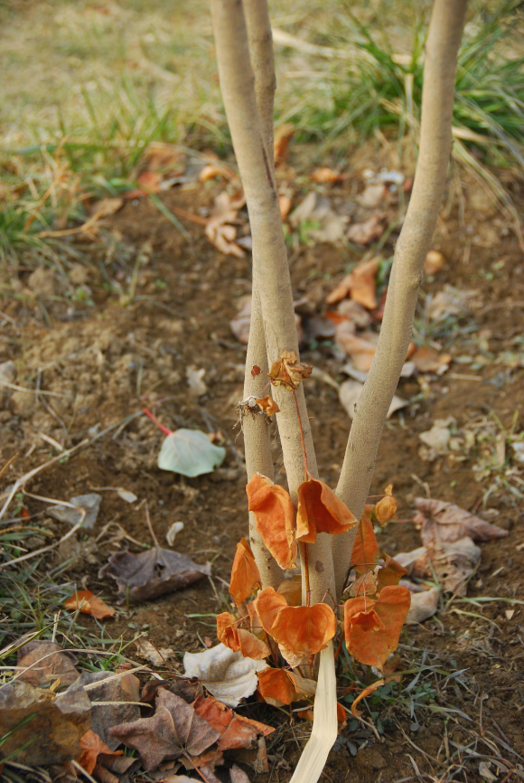 겨우 잎 몇 닢 남기고 앙상한 상태다.