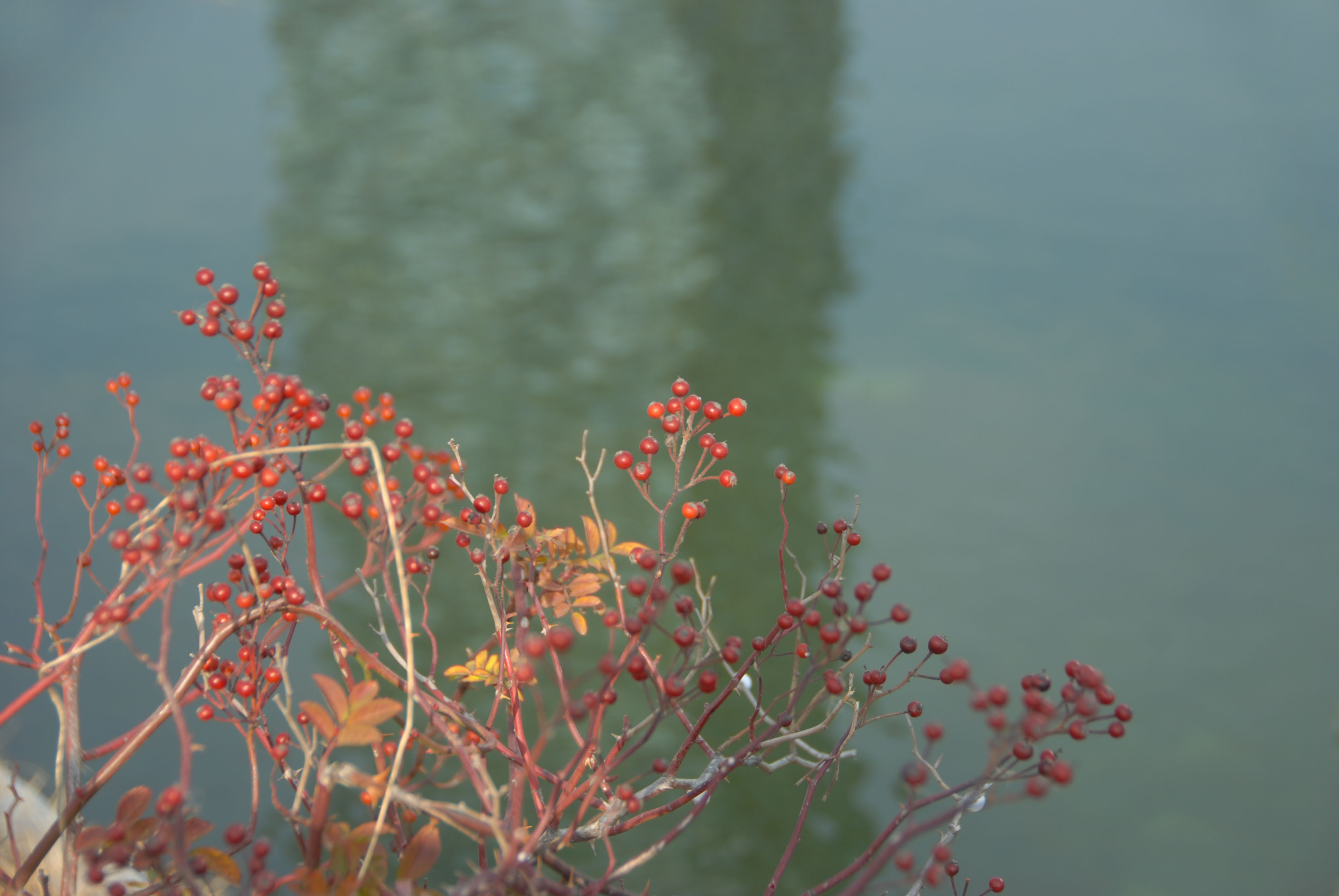 겨울인데도 빨갛게 익는 열매가 그대로 남아 있어
