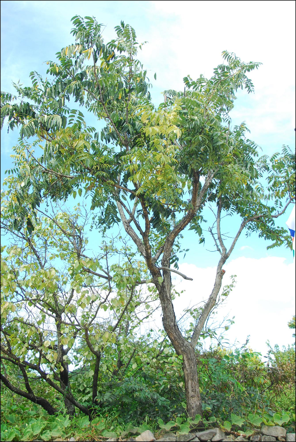 잎은 어긋나고 깃꼴겹잎으로 작은 잎은 10~20개다.