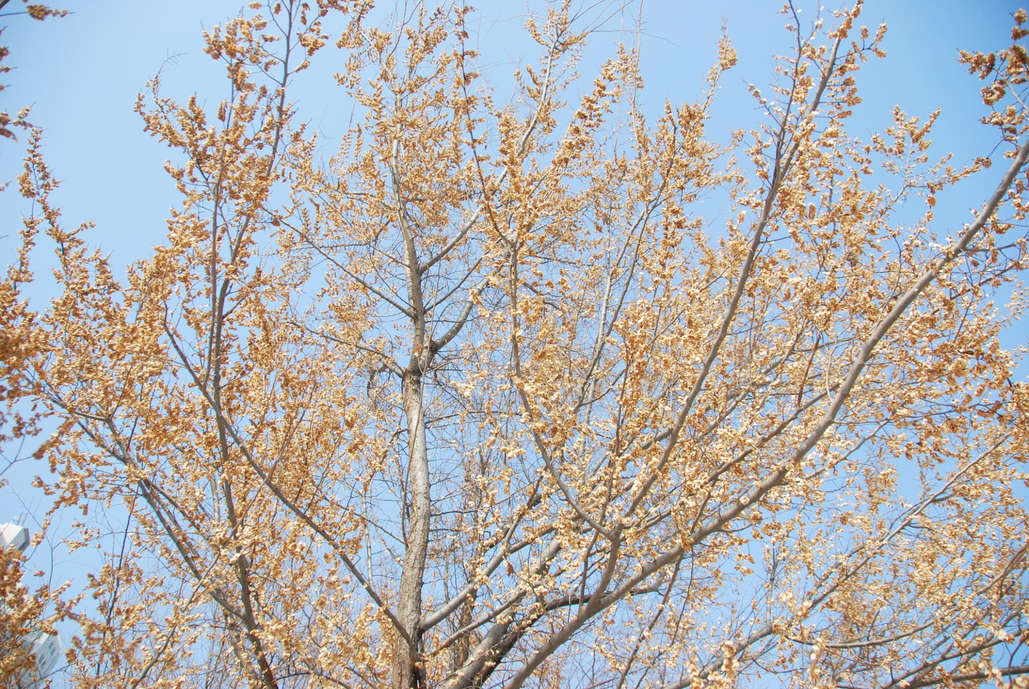 연한 갈색으로 가을에 익는다. 열매는 겨울에도 남아 있다.
