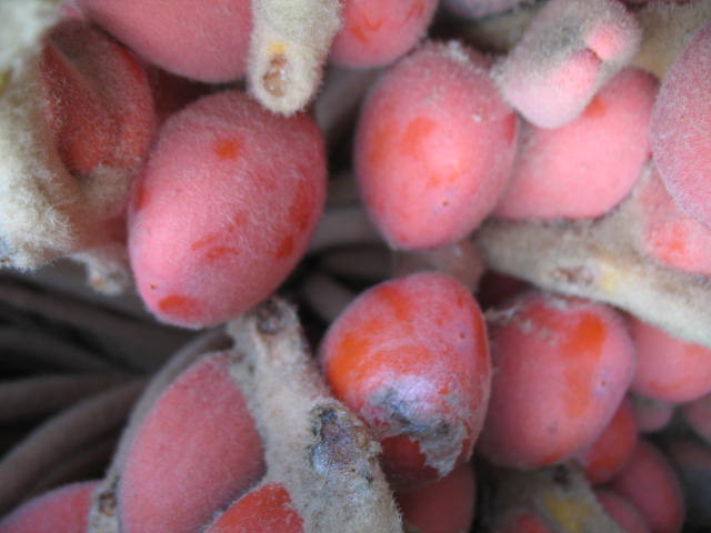 소철 암꽃 속에 열매가 탐스럽게 들어 있다.