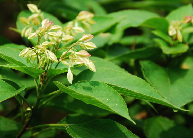 꽃은 8~9월에 새가지 끝에 흰색 꽃이 모여 핀다.