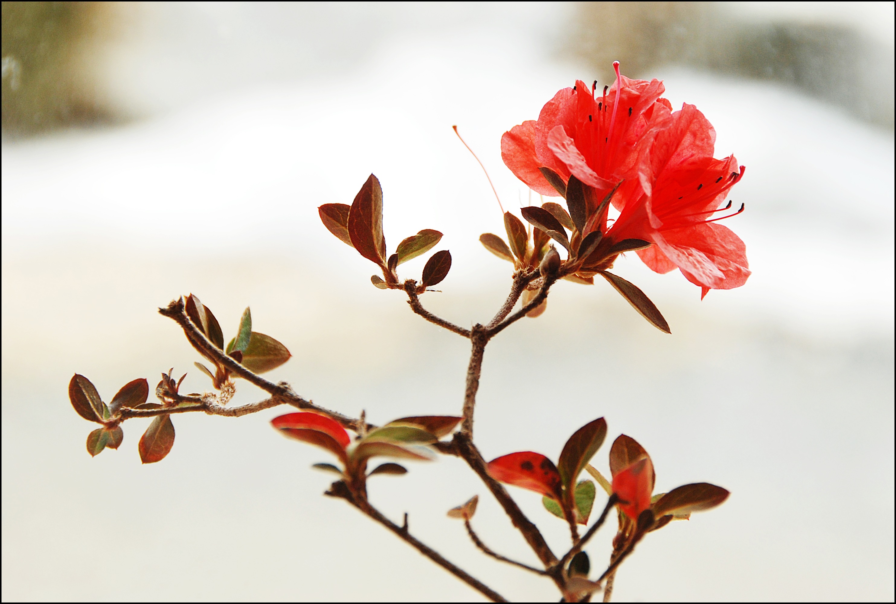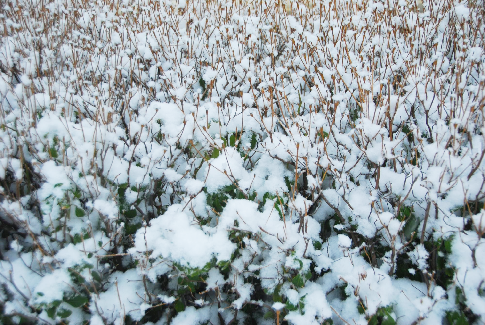 흰 눈 뒤집어쓰고 겨울 나는 산철쭉이다.