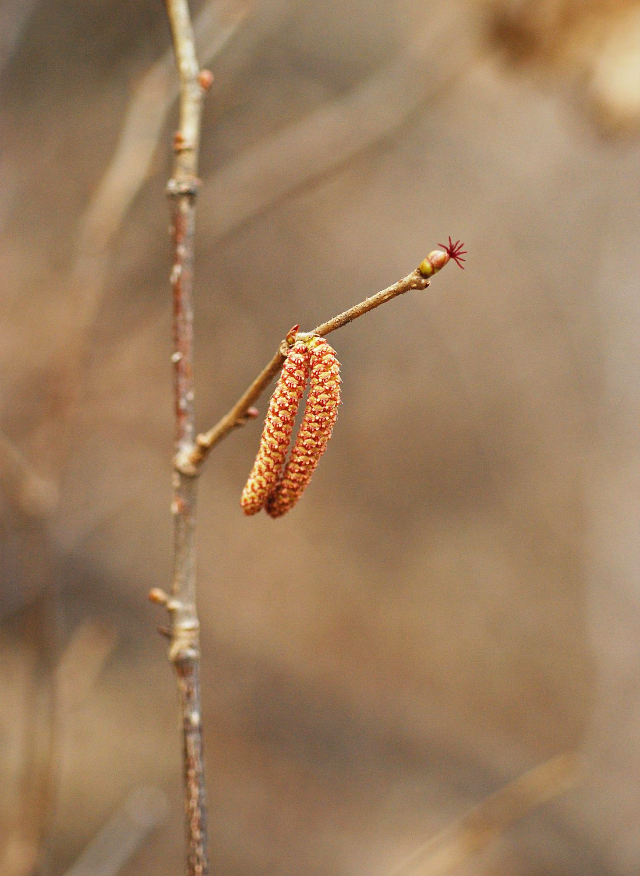 암수한그루로 잎이 나기 전 꽃이 먼저 핀다.