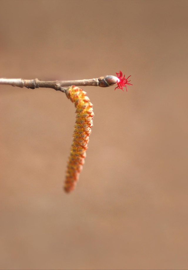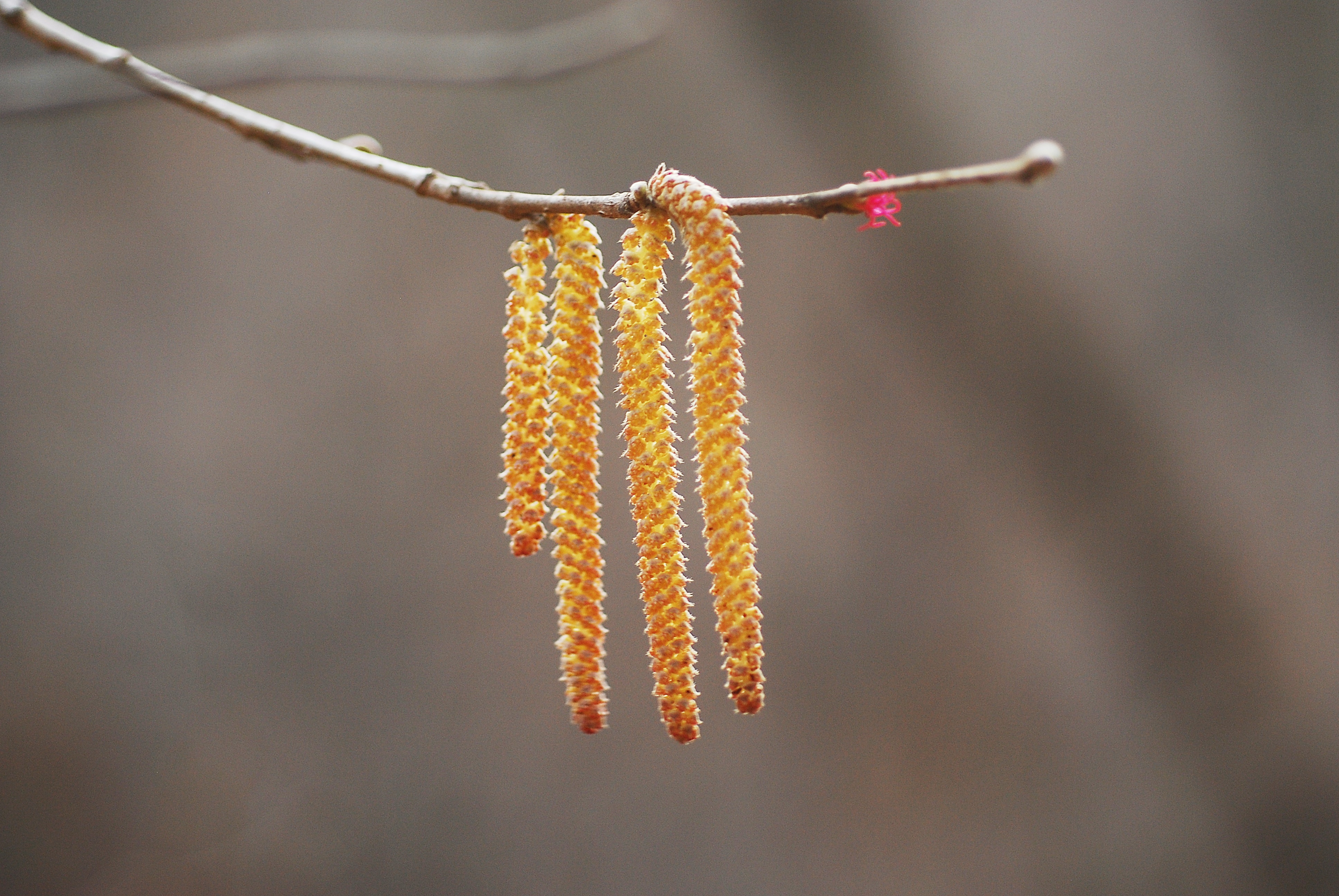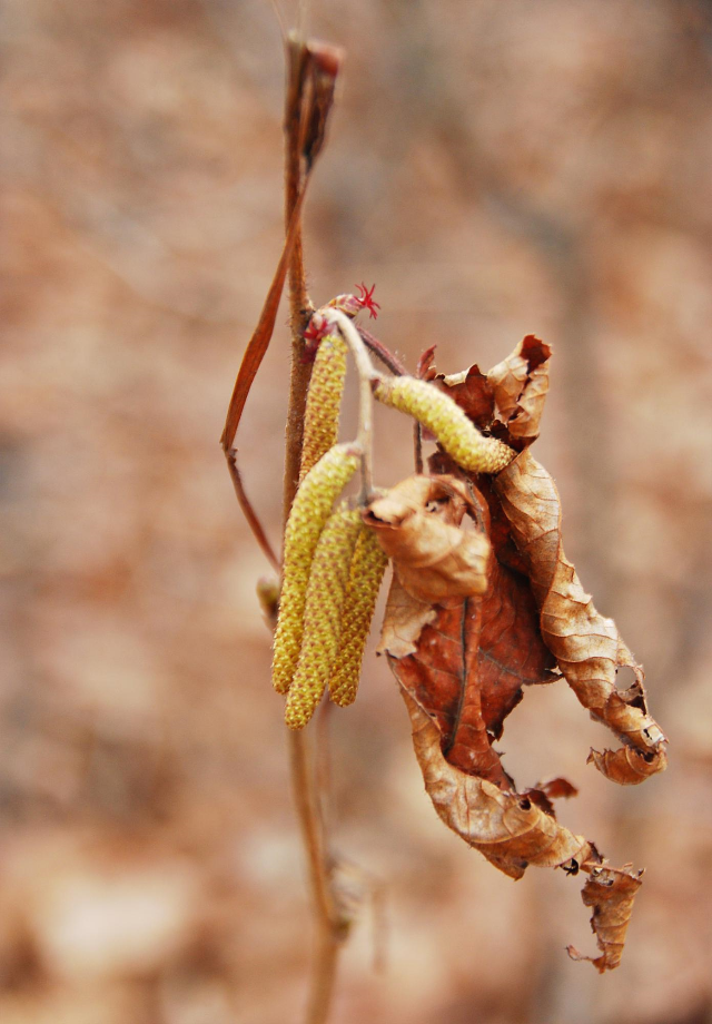 암수한그루로 잎보다 먼저 꽃이 핀다.