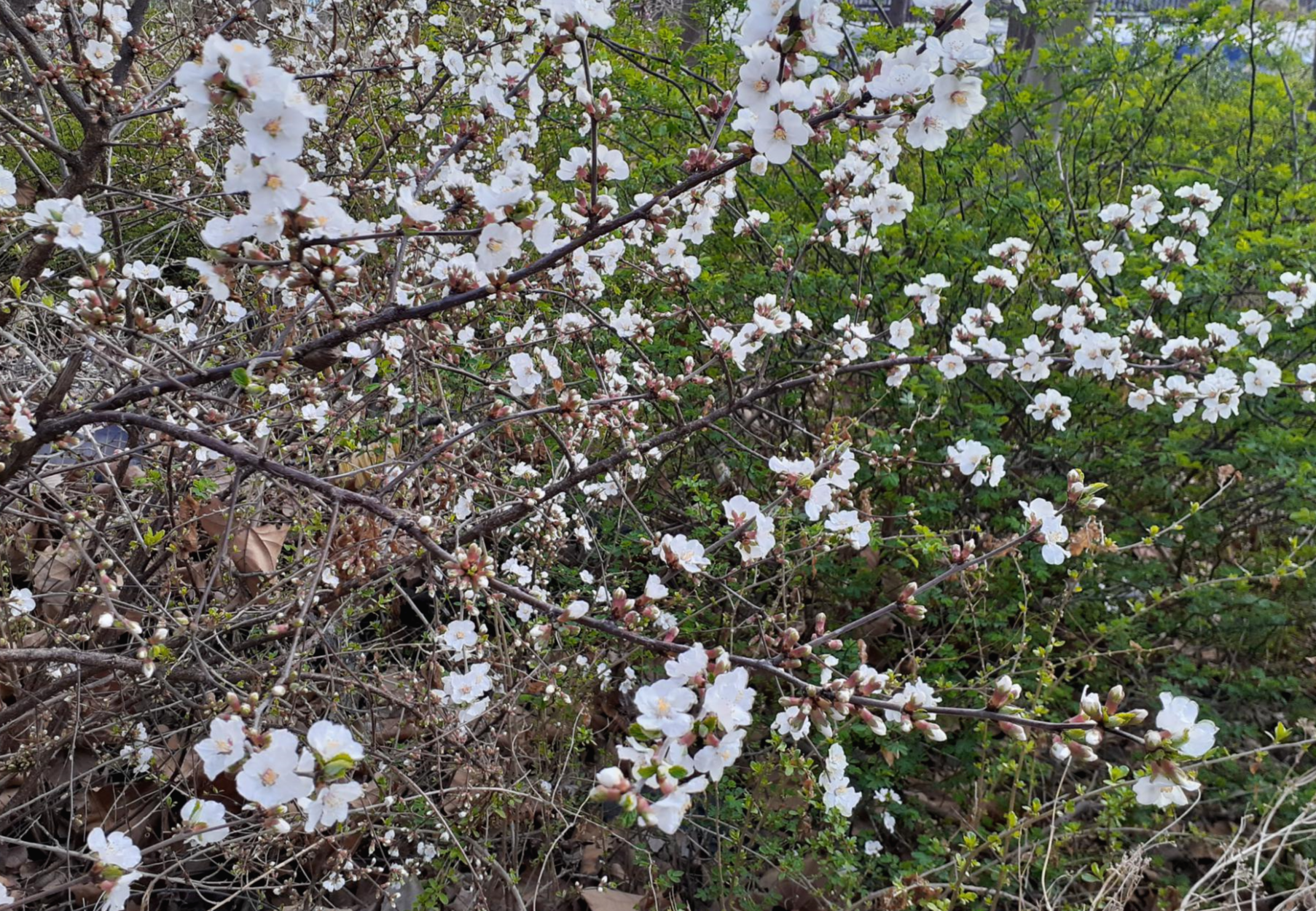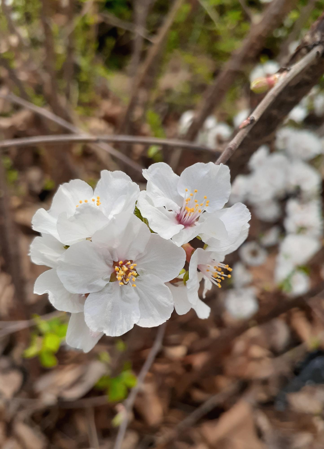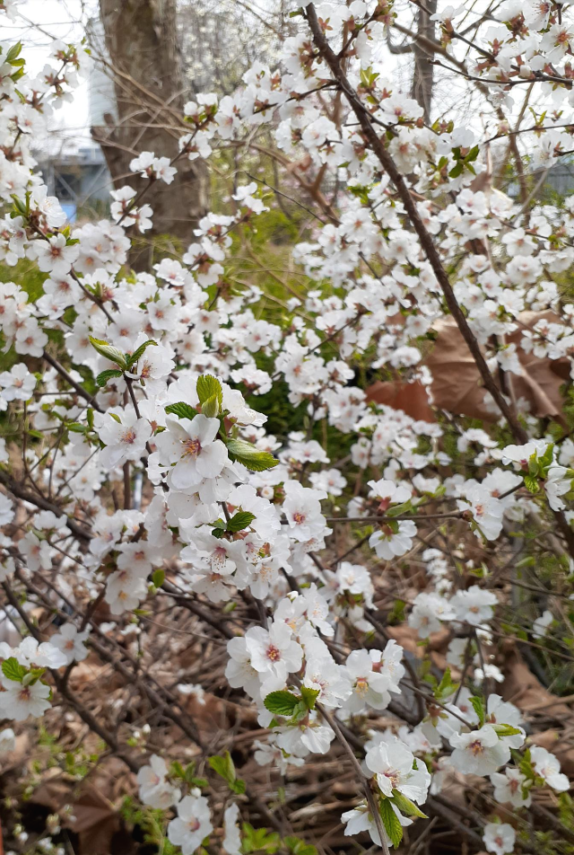 했던 앵두나무다. 짙은 갈색의 나무껍질은 불규칙하게
