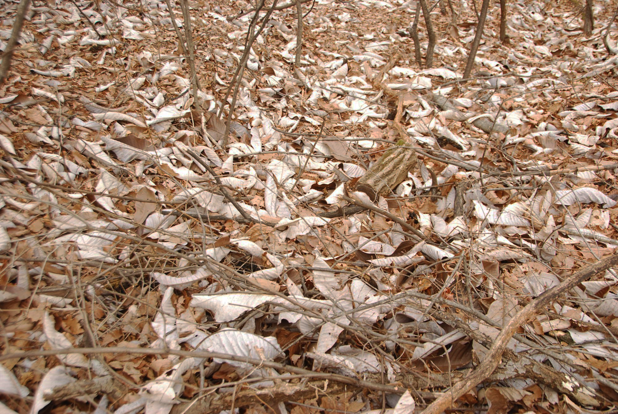 일본목련이 있는 곳 겨울 주변이 온통 잎으로 하얗게 보인다.