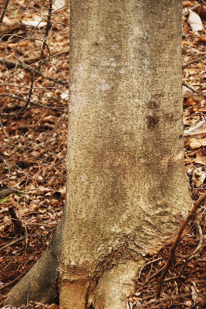 수피는 회백색에서 회색으로 밋밋하고 껍질 눈이 많다.