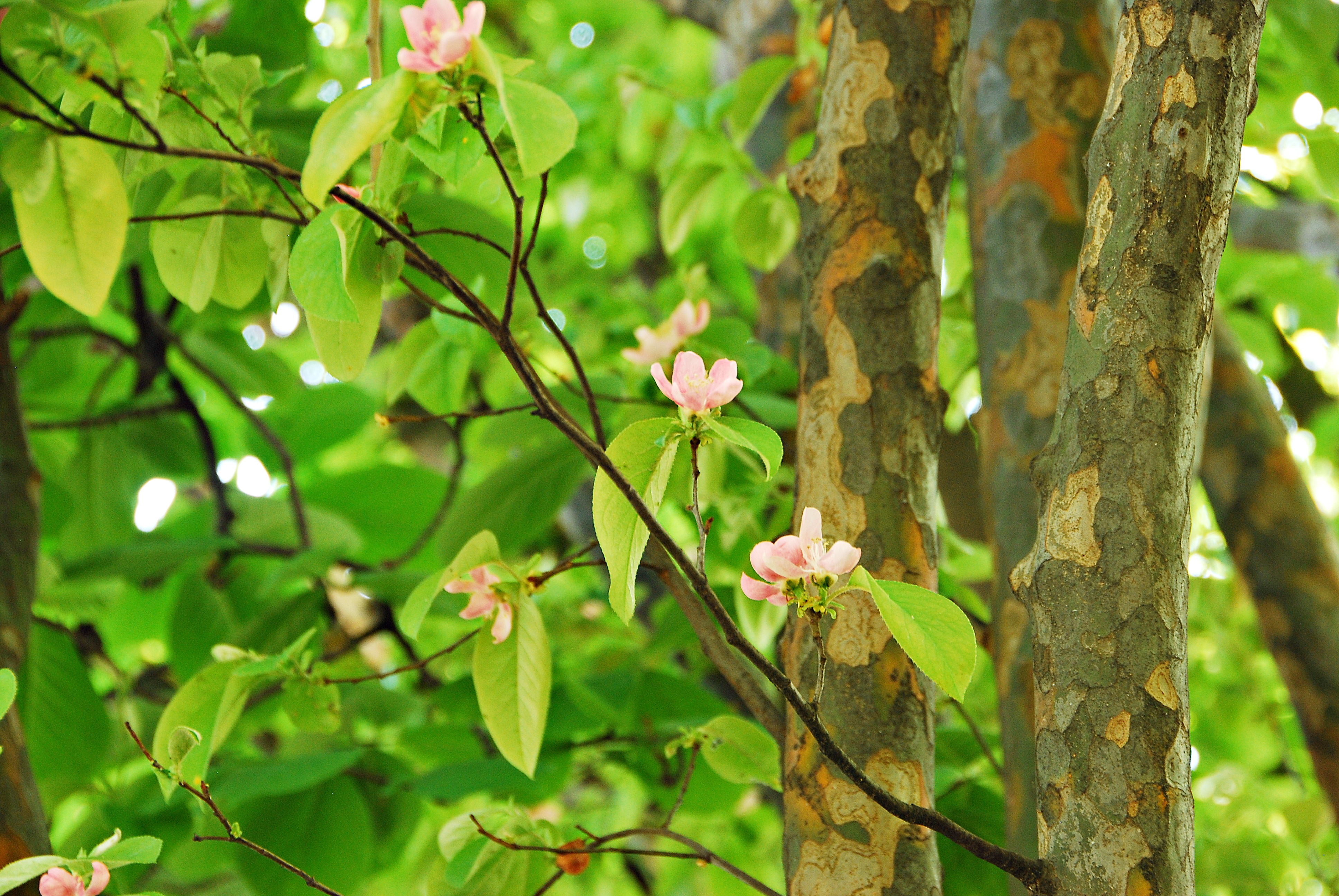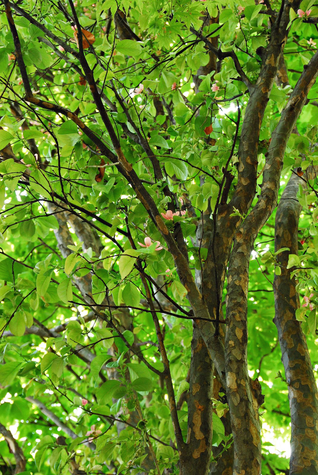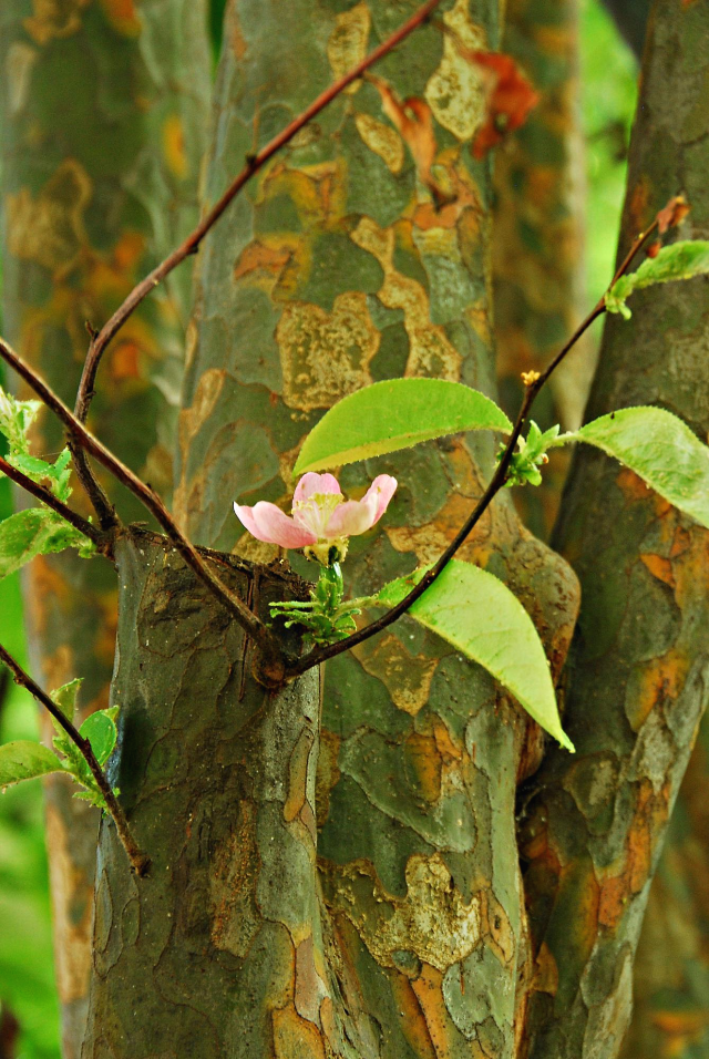 바뀌기 전 군복을 연상케 하는 모과나무 수피다.