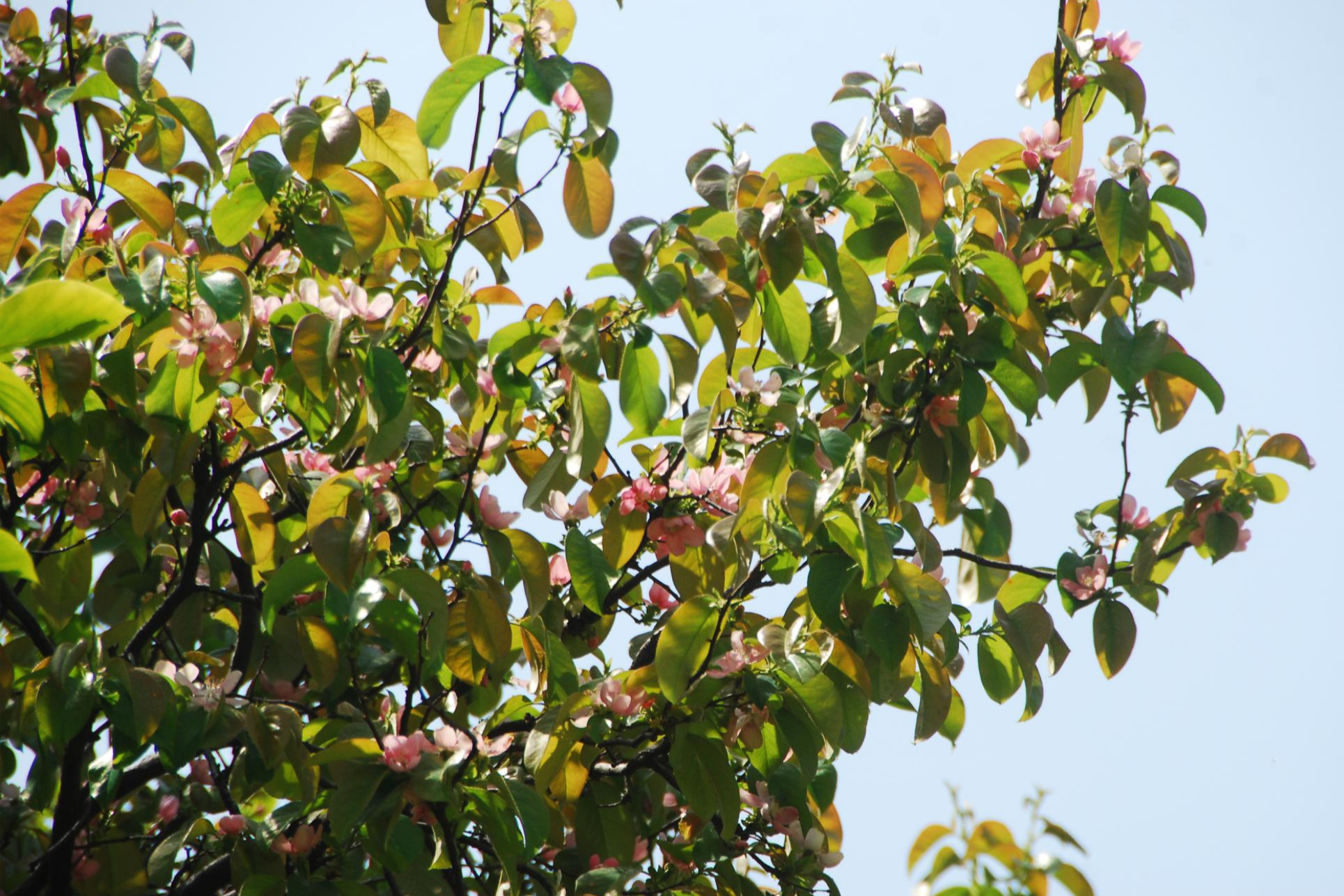 전혀 눈치 채지 못했는데 오늘 우연히 모과나무 꽃을 발견,
