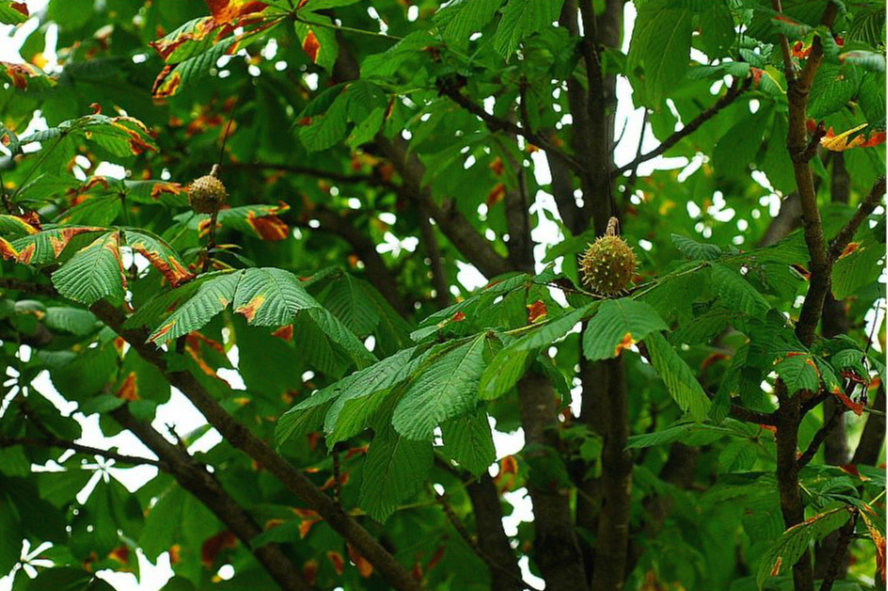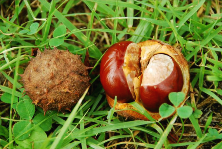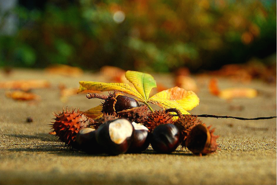 9월의 가시칠엽수 열매로 밤처럼 생겼다.