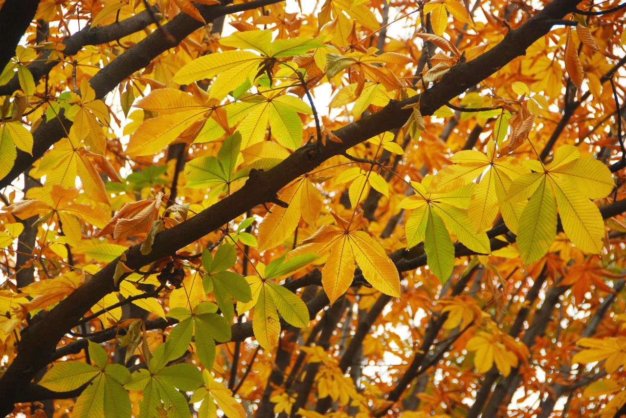 가을에 단풍 든 칠엽수다.