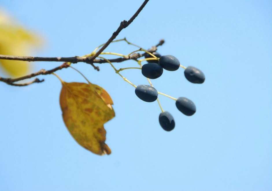 꽃은 암수딴그루로 어린 가지 끝의 원추꽃차례에