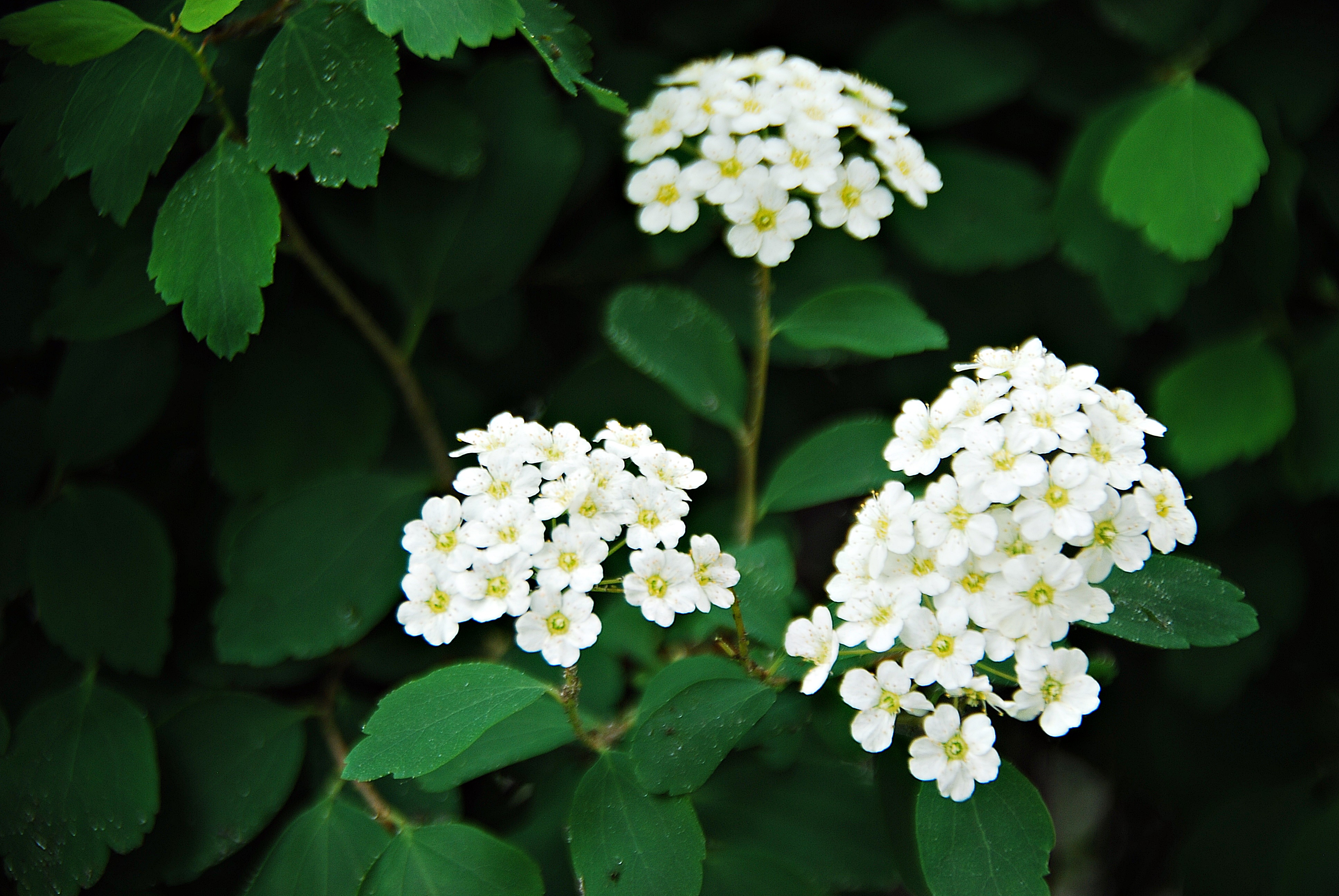 꽃은 5~6월에 새 가지 끝의 산형꽃차례에 흰색 꽃이 달린다.