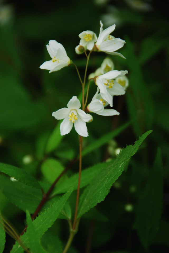 잎은 달걀모양 또는 넓은 피침형으로 가장자리에 잔톱니가 있다.