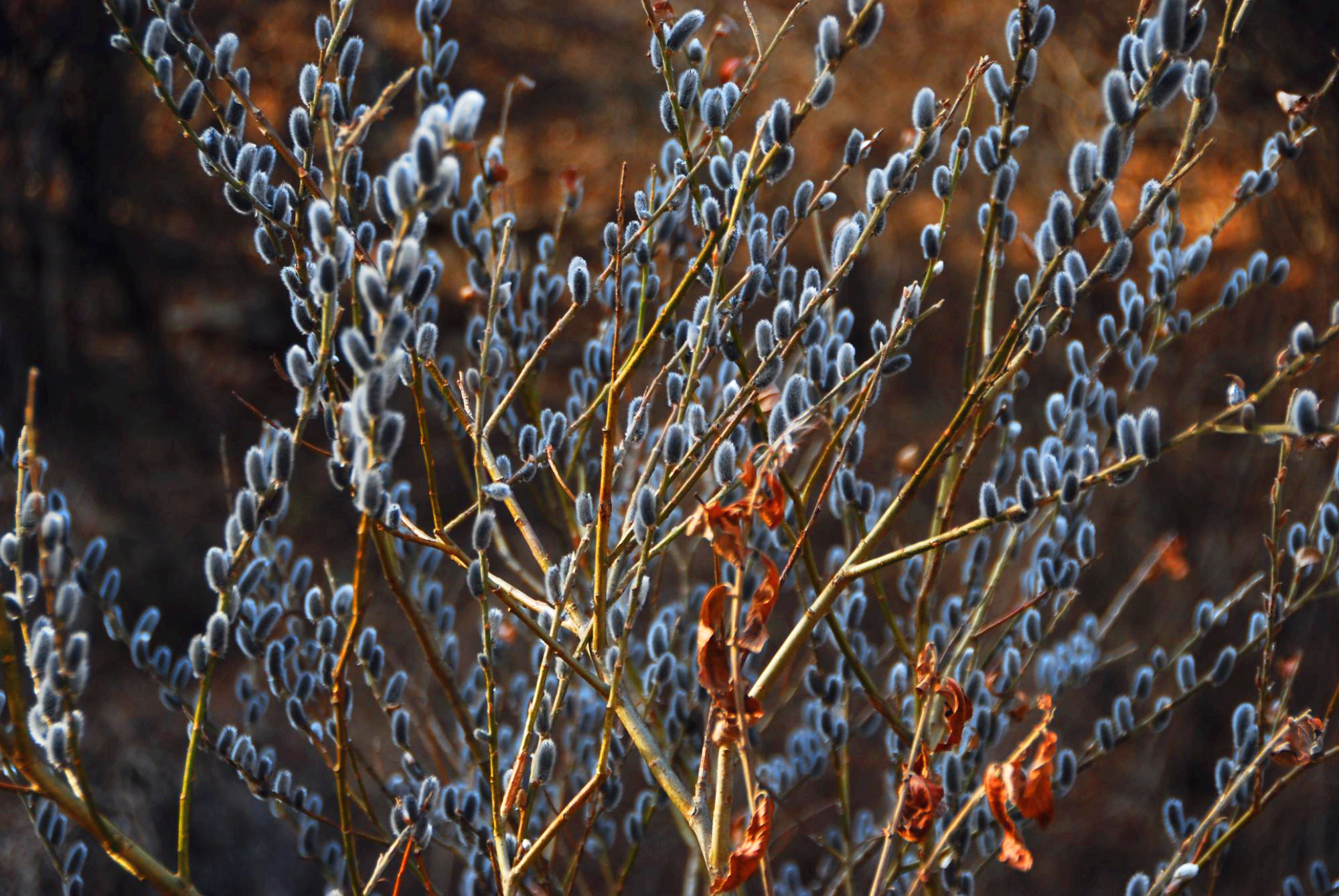 수리산 계곡 갯버들 오후 빛에 반짝인다.