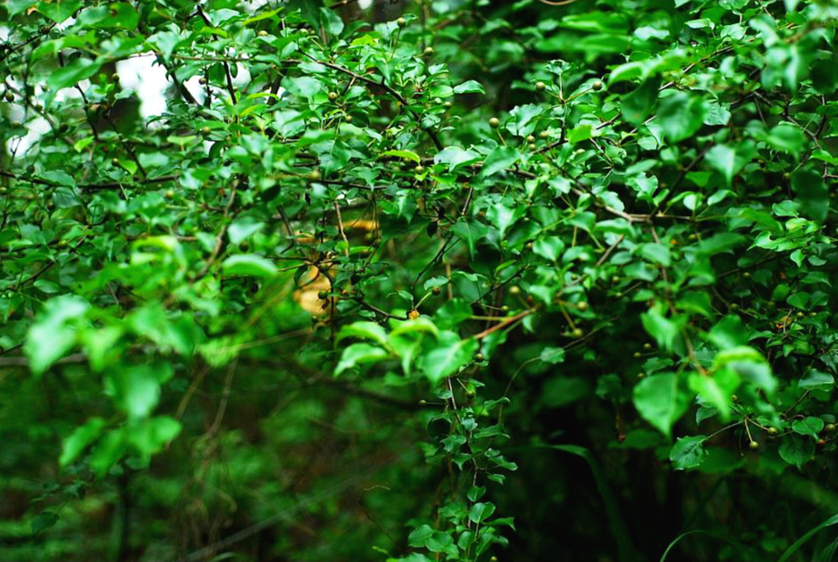 잎과 열매가 작고 짧은 가지는 갈색으로 가시처럼 보인다.
