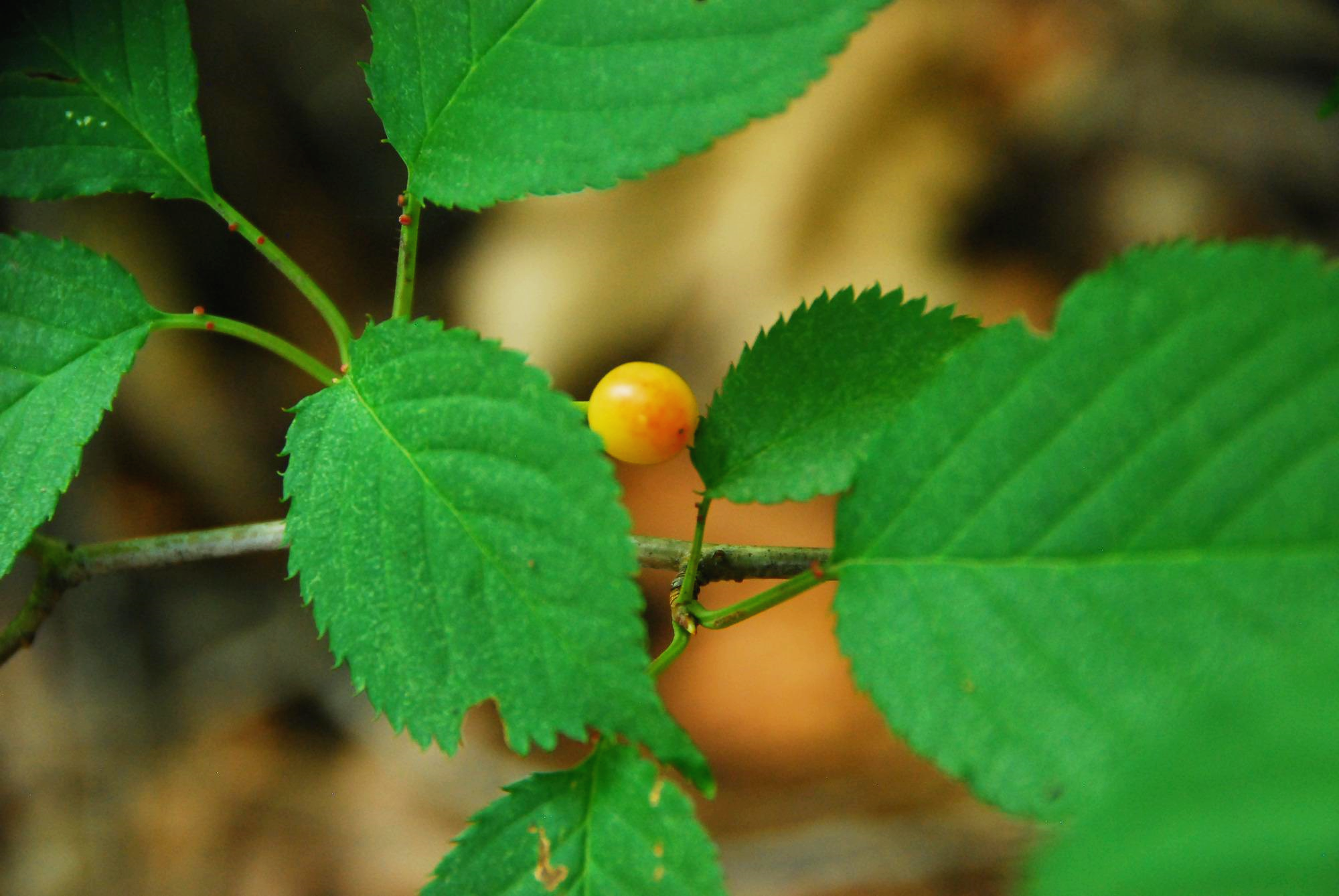 열매는 핵과로 둥글며 검붉은색으로 익는다.