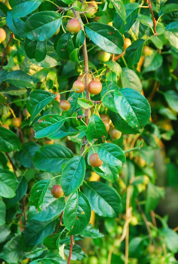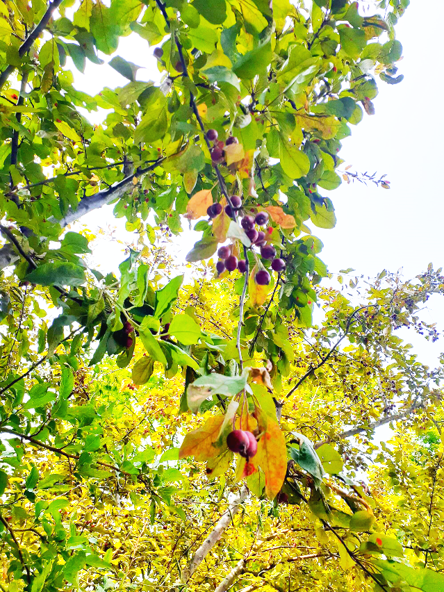 10월의 꽃사과 열매로 동그스름한 모양이며
