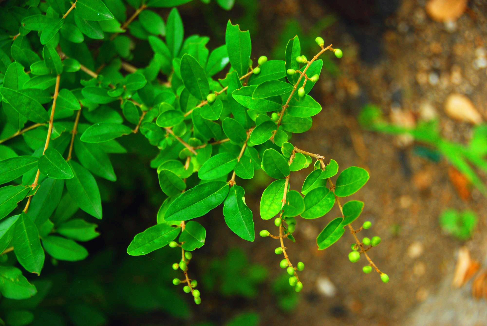 잎 끝이 뾰족한 '둥근잎섬쥐똥나무'도 있다.