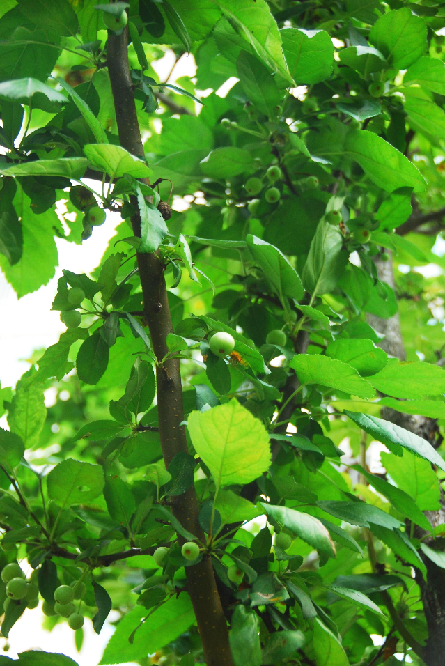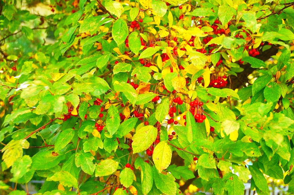 열매는 작고 둥글며 붉은색 또는 황홍색으로 익는다.