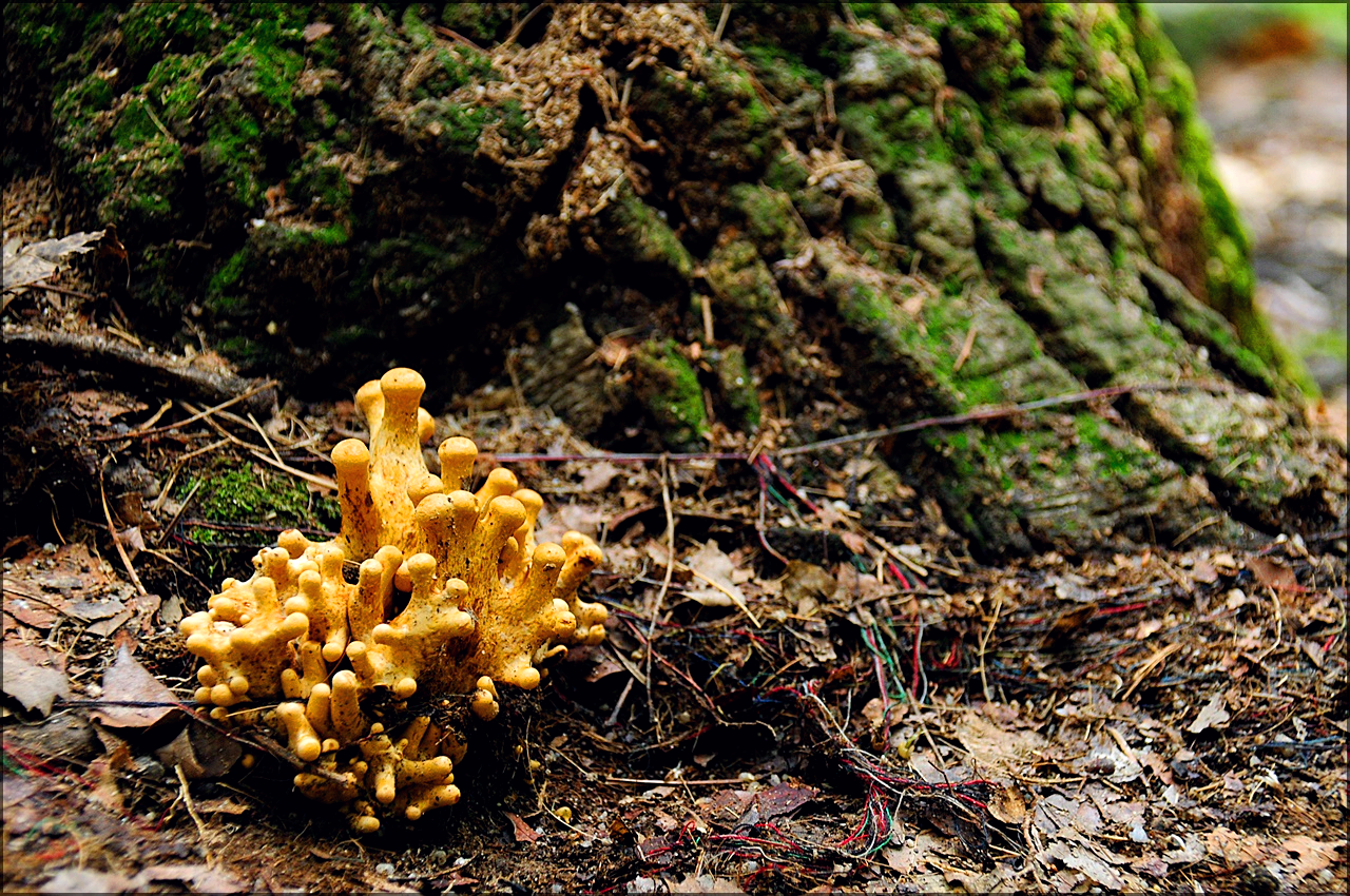나무 그루터기 땅속에서 자라는 처음 보는 특이한 모습의