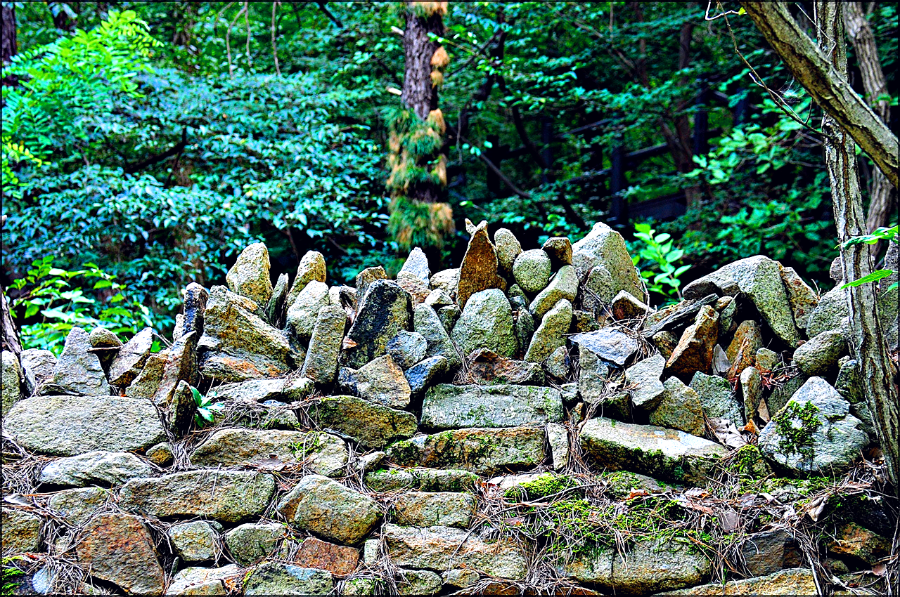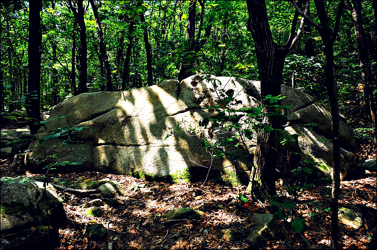 숲 속 편안하게 누워있는 바위덩이