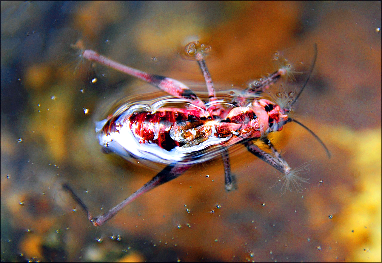 계곡물에 잠시 쉬려고 내려갔지만 물 위에 떠있는
