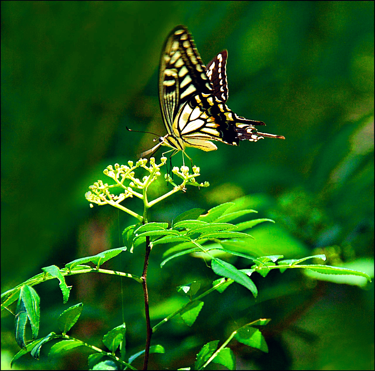 호랑나비 한 마리 산초나무 꽃을 찾는다.