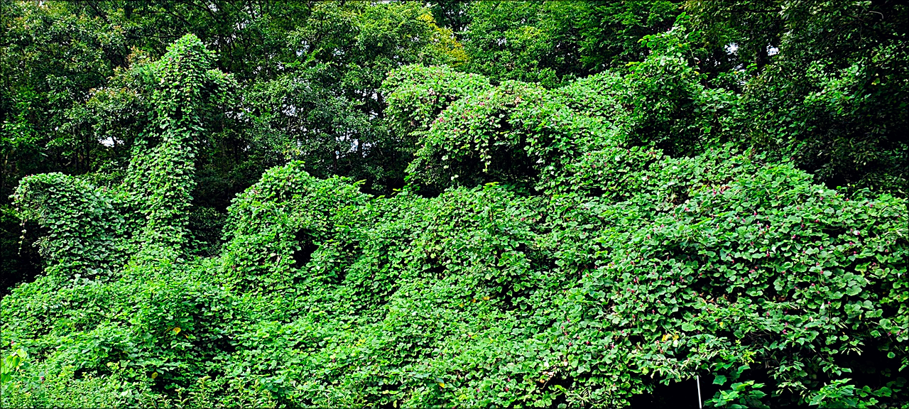 피운 칡넝쿨이 넓게 식물들을 뒤덮고 있다.