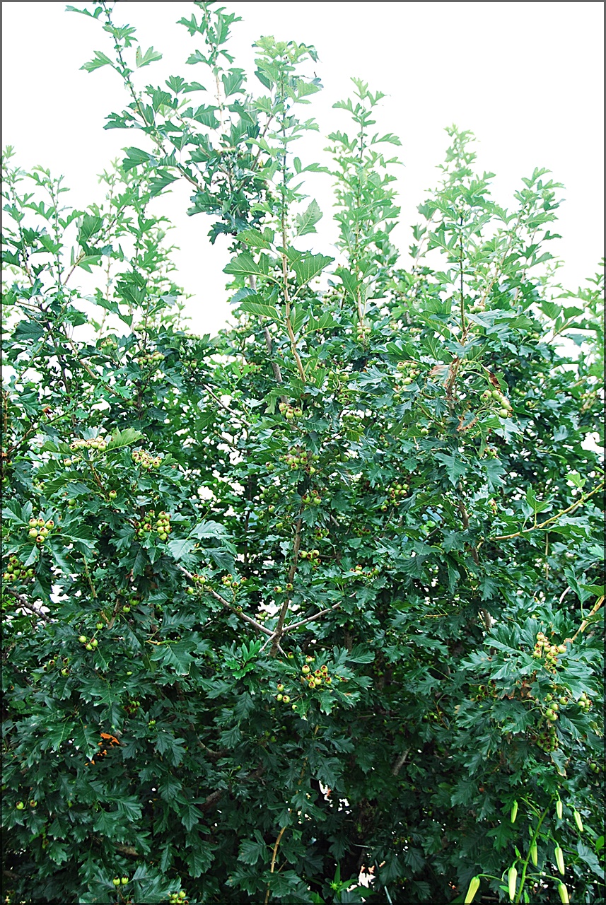 7월의 익기 전 광덕산 산사나무 열매로
