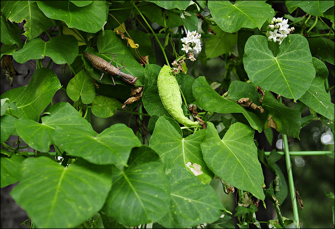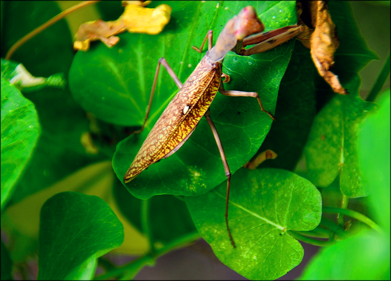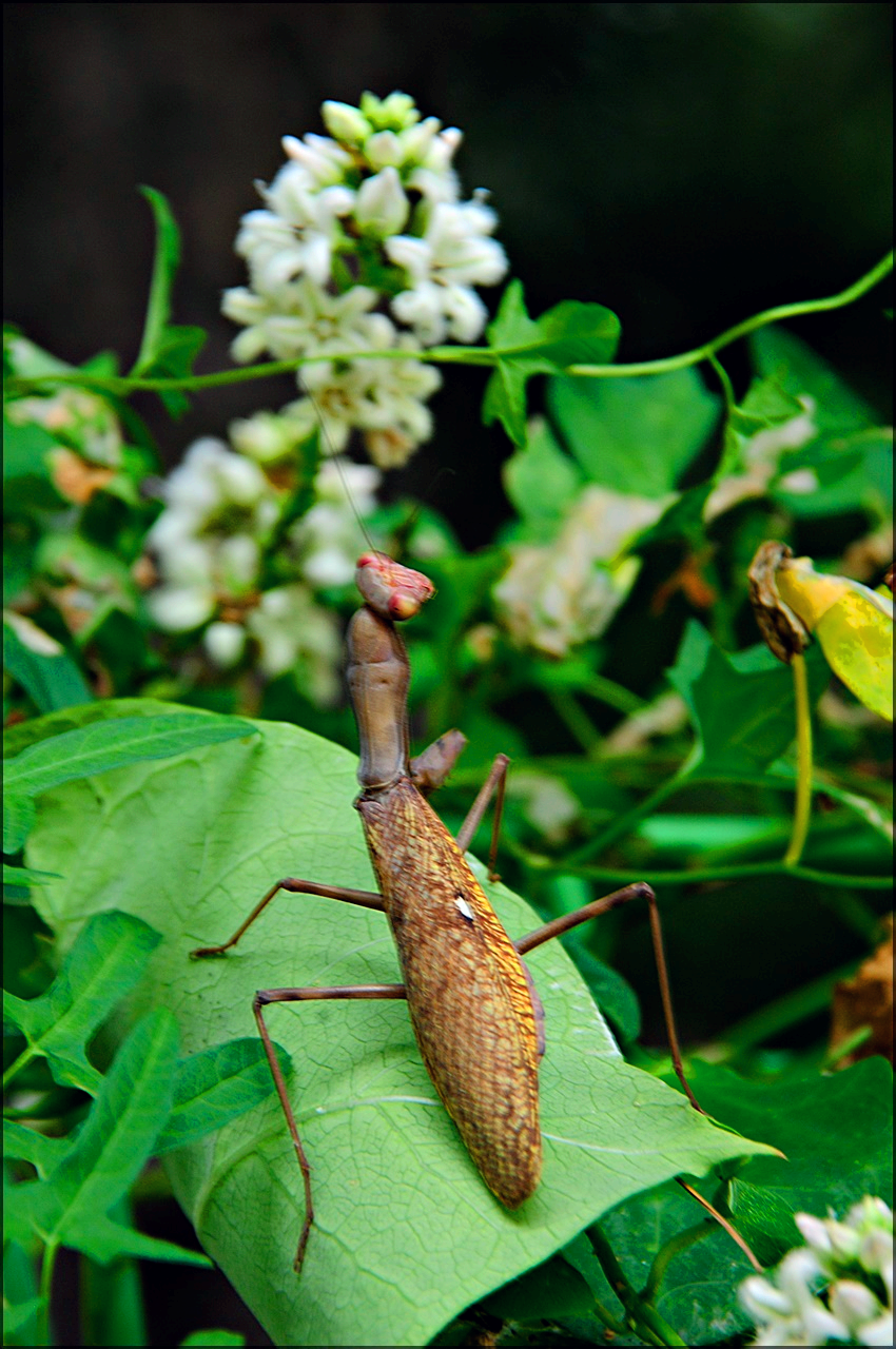 자라는 곳에 좀사마귀 한 마리 찾아든다.