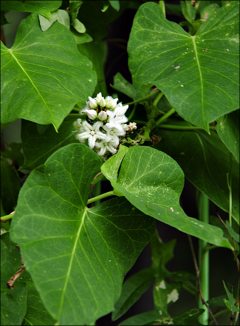 박주가리 꽃과 열매가 철제 펜스를 타고