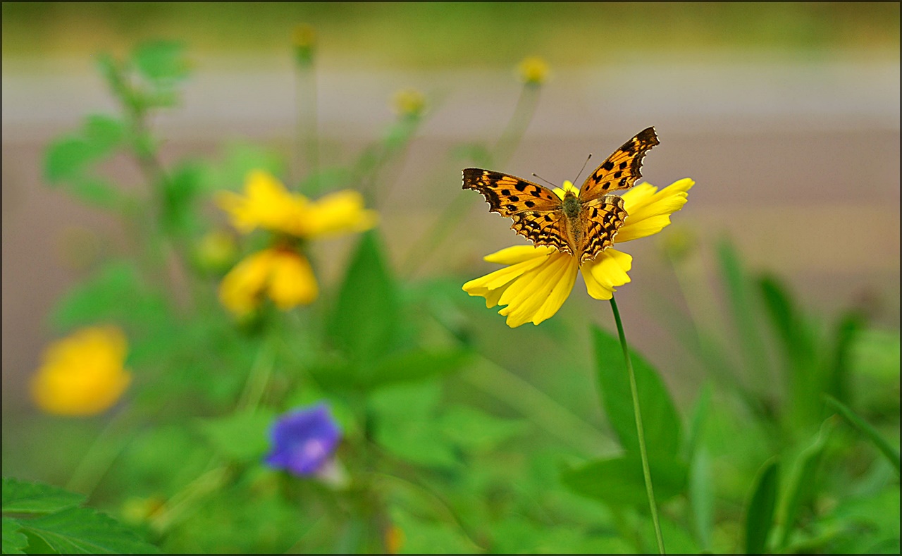 큰금계국 꽃을 찾은 네발나비 한 마리