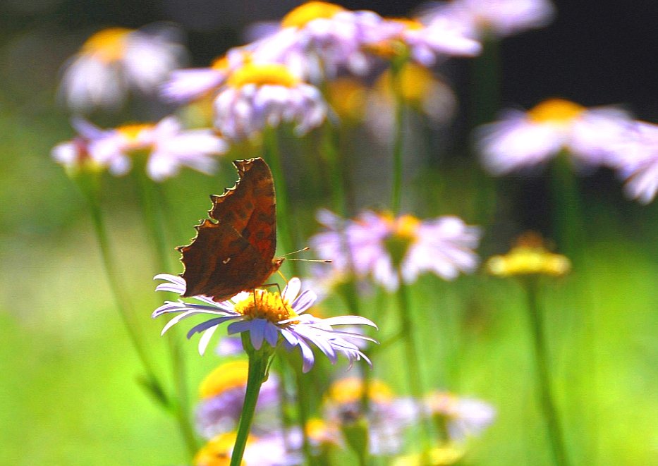 네발나비로 뒷날개 뒷면 가운데에 C자 무늬가 있다.