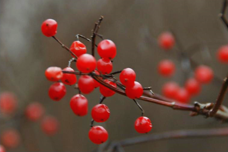 10월의 백당나무 열매로 겨울까지 달려 있다.