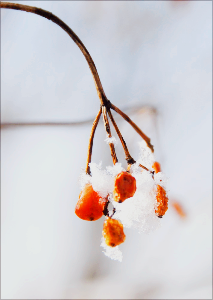 12월의 백당나무 열매로 눈이 내려앉았는데