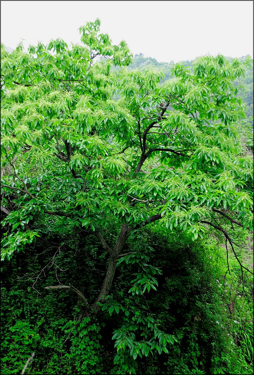 6월의 밤나무로 꽃이 활짝 피어 있다. 밤꽃은