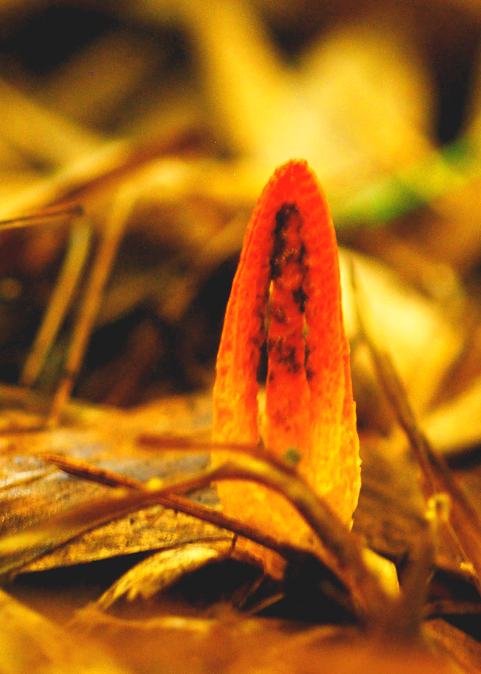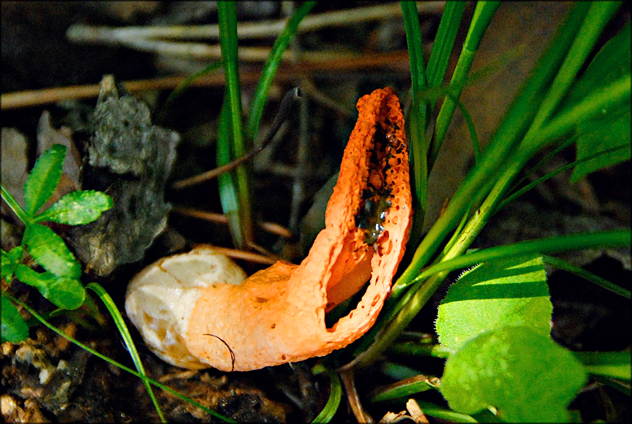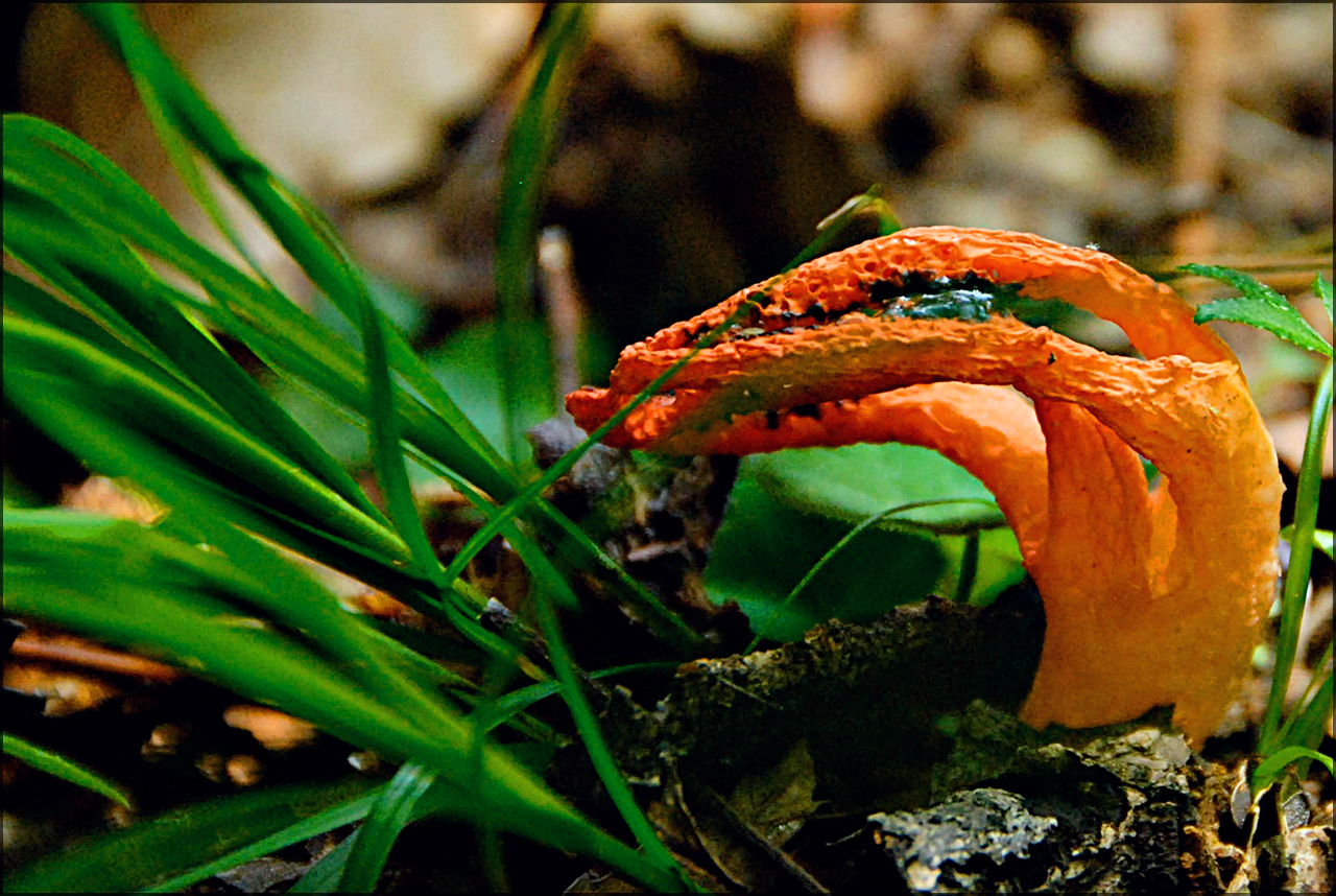 갈래로 갈라진 오징어 발 모양의 버섯이 솟아난다.