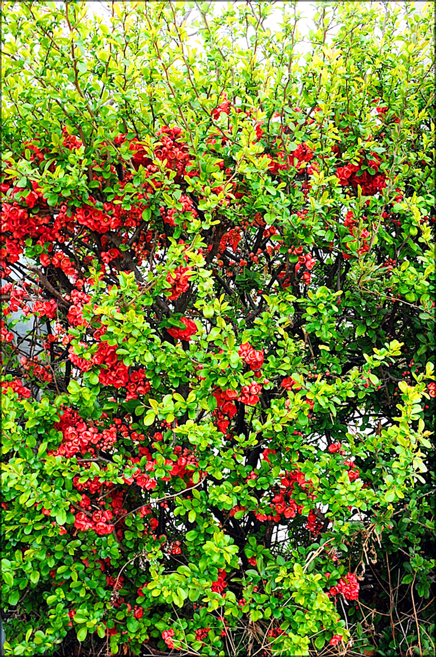 아래는 안양천변 4월의 명자나무다.