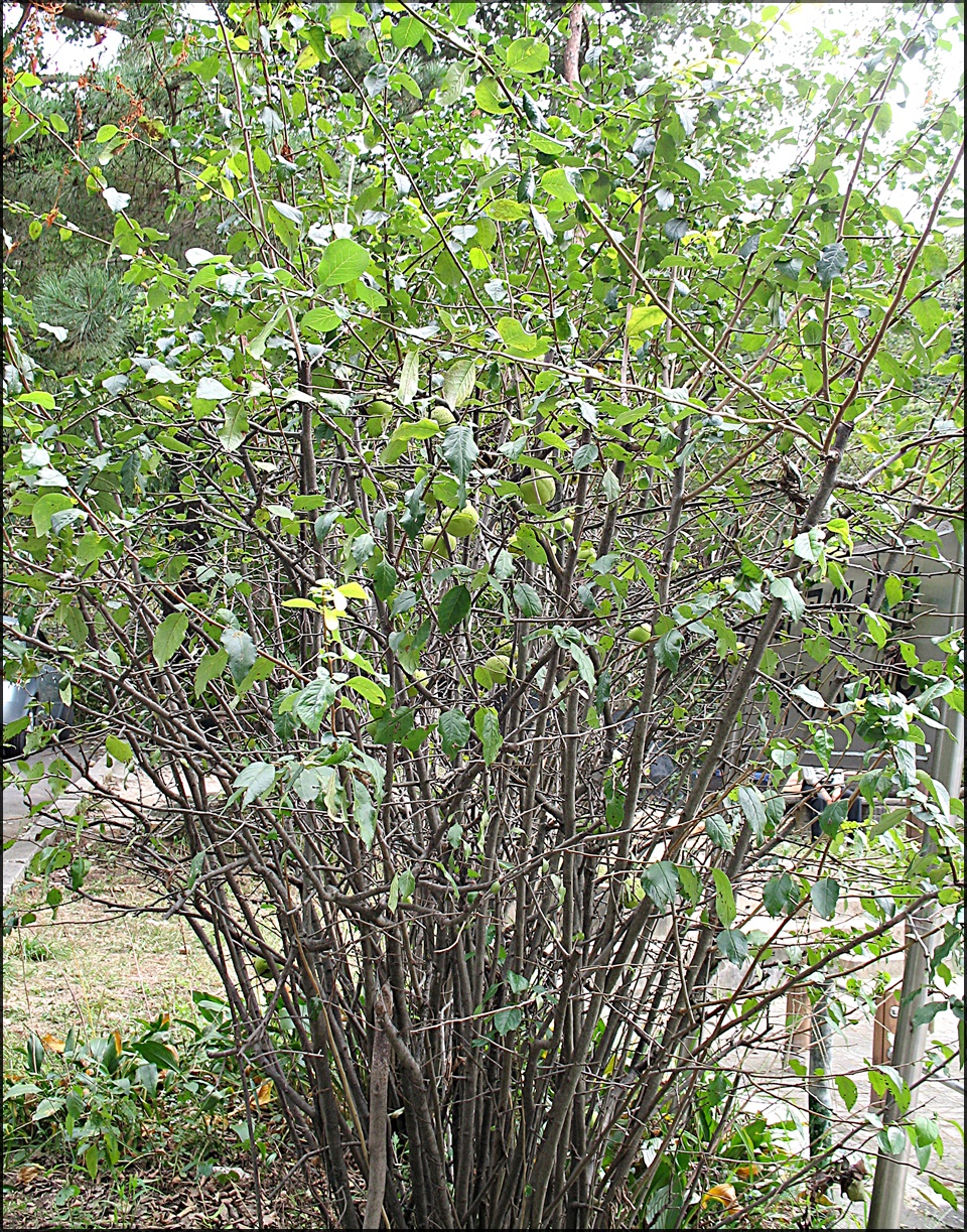 나무는 키가 크고 바르게 자라는데 풀명자는 키가 작고