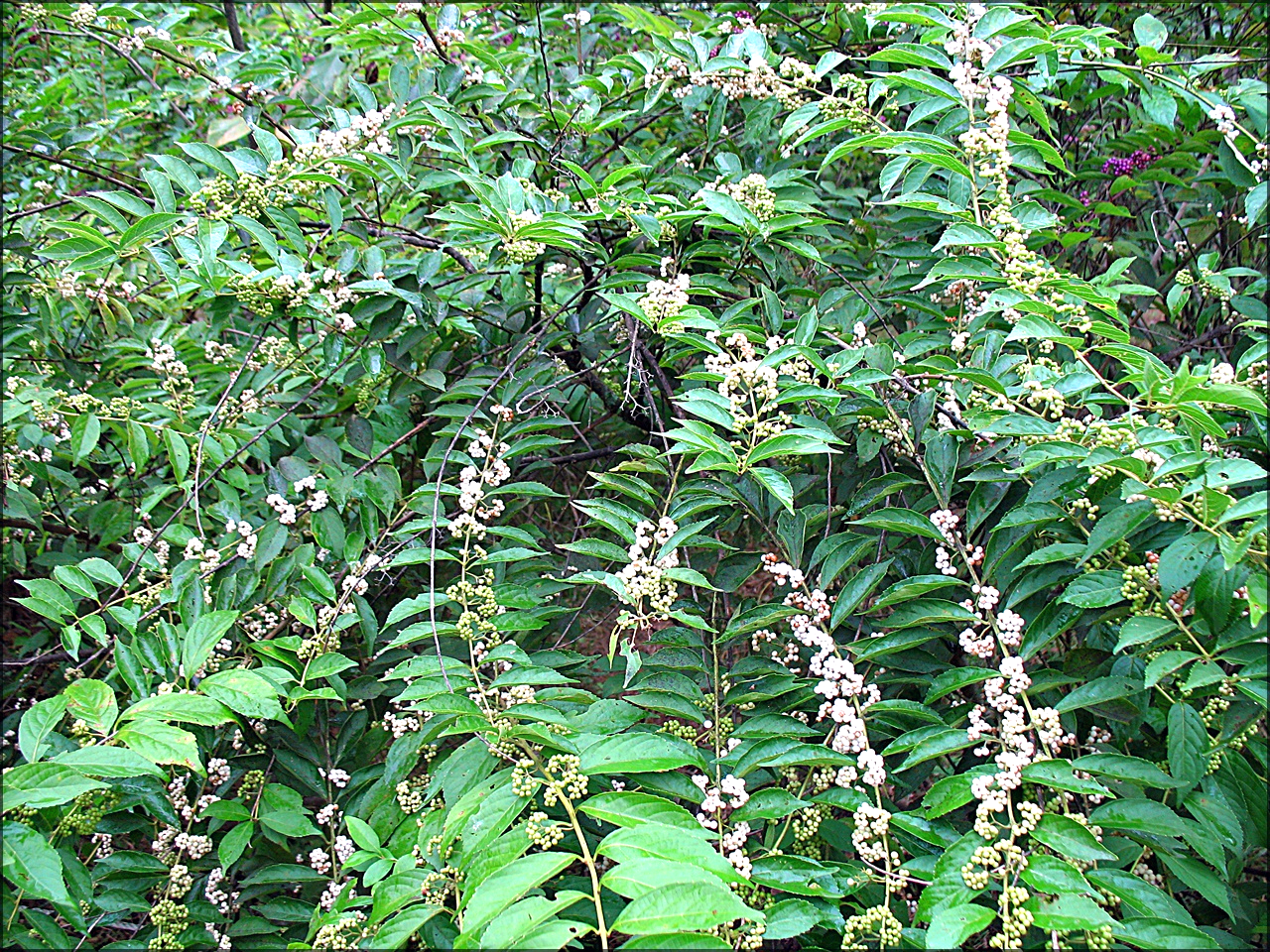 좀작살나무로 꽃은 7~ 8월에 잎겨드랑이의 취산꽃차례에