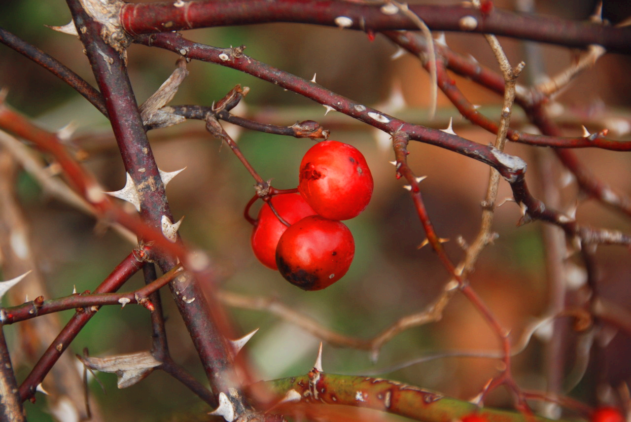 붉은 열매가 그대로 매달려 있어 아름답다.