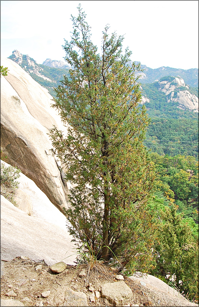 12월의 노간주나무 열매로 분백색을 띠고 있다.