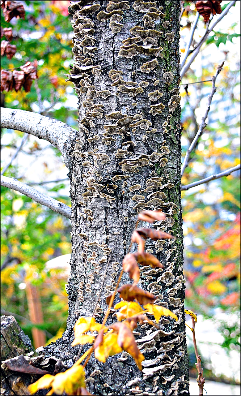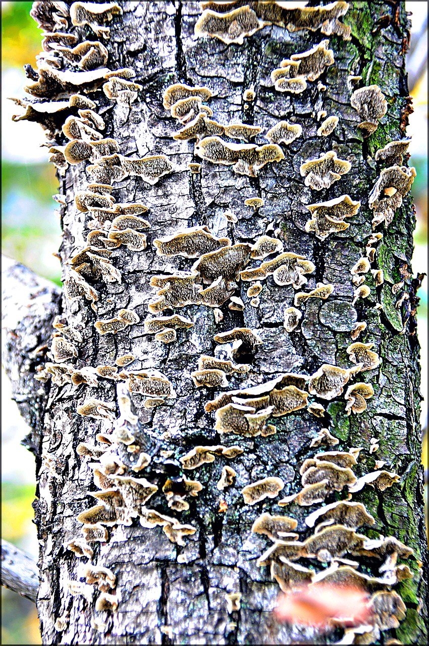 수명을 다한 모감주나무에 구름버섯 종류로 자라고 있다.