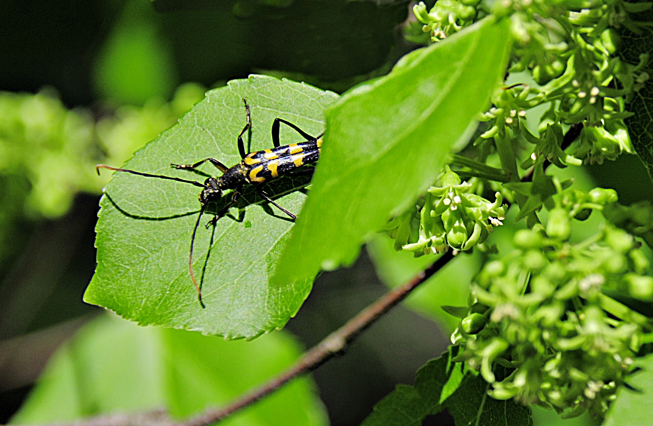 6월의 노박덩굴 꽃과 긴알락꽃하늘소