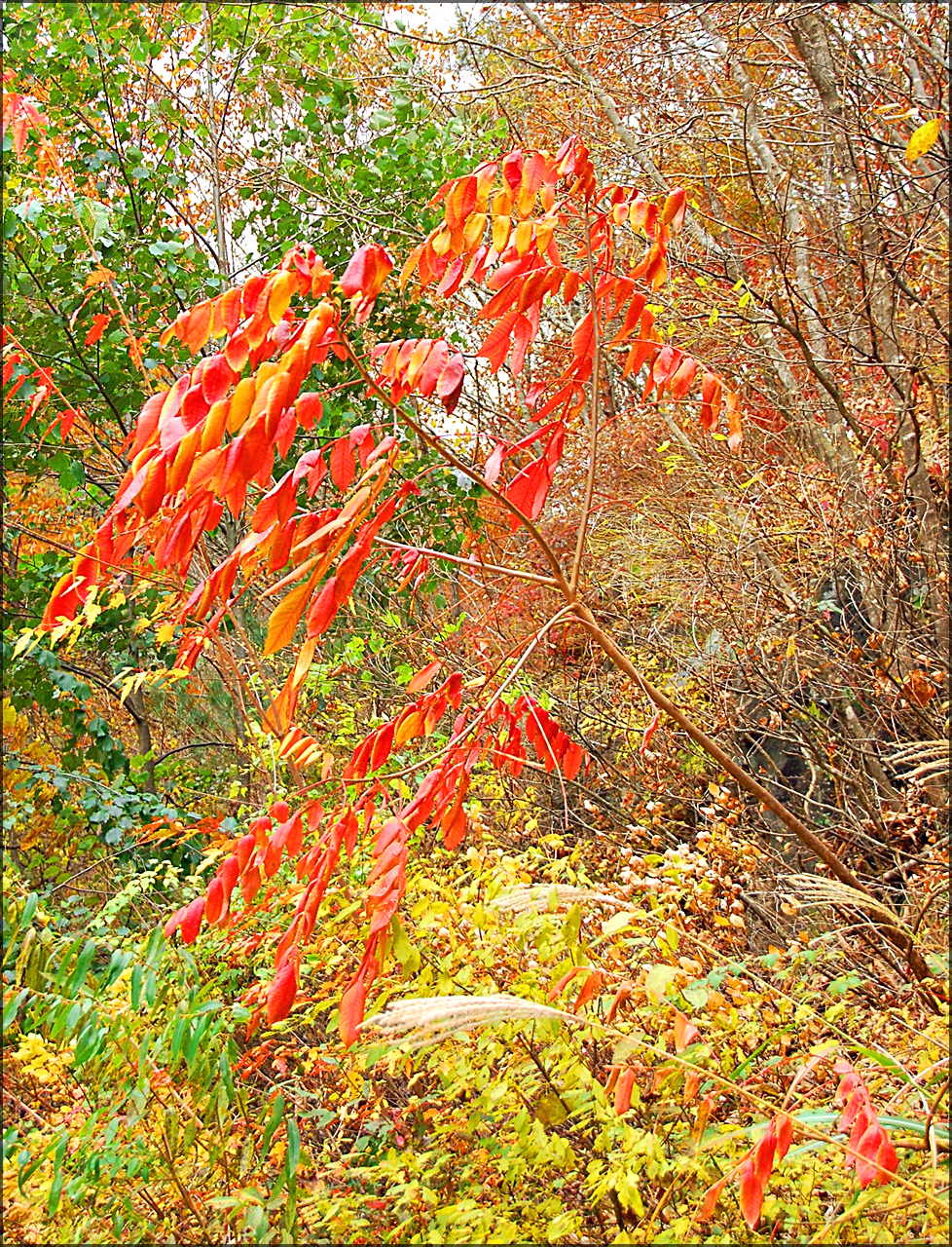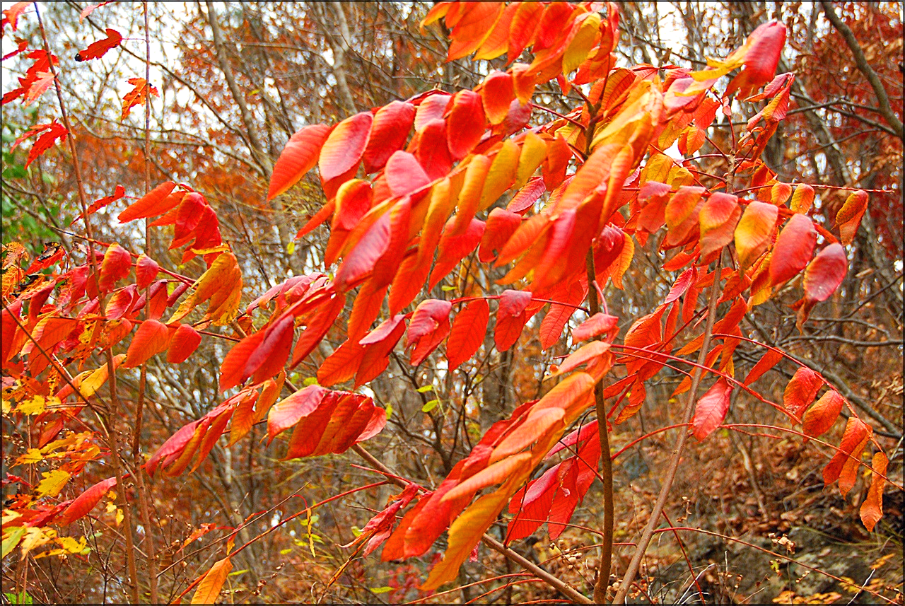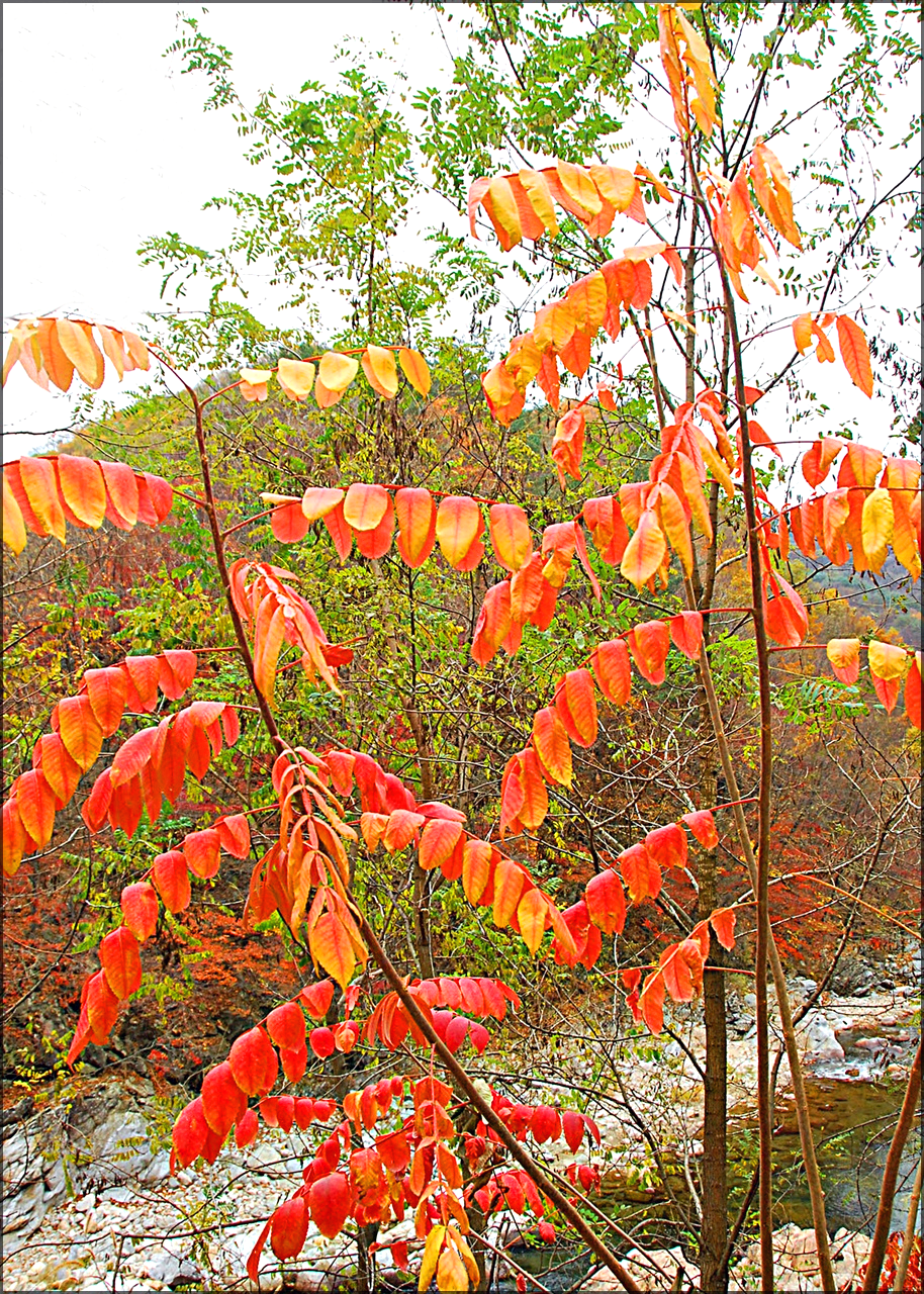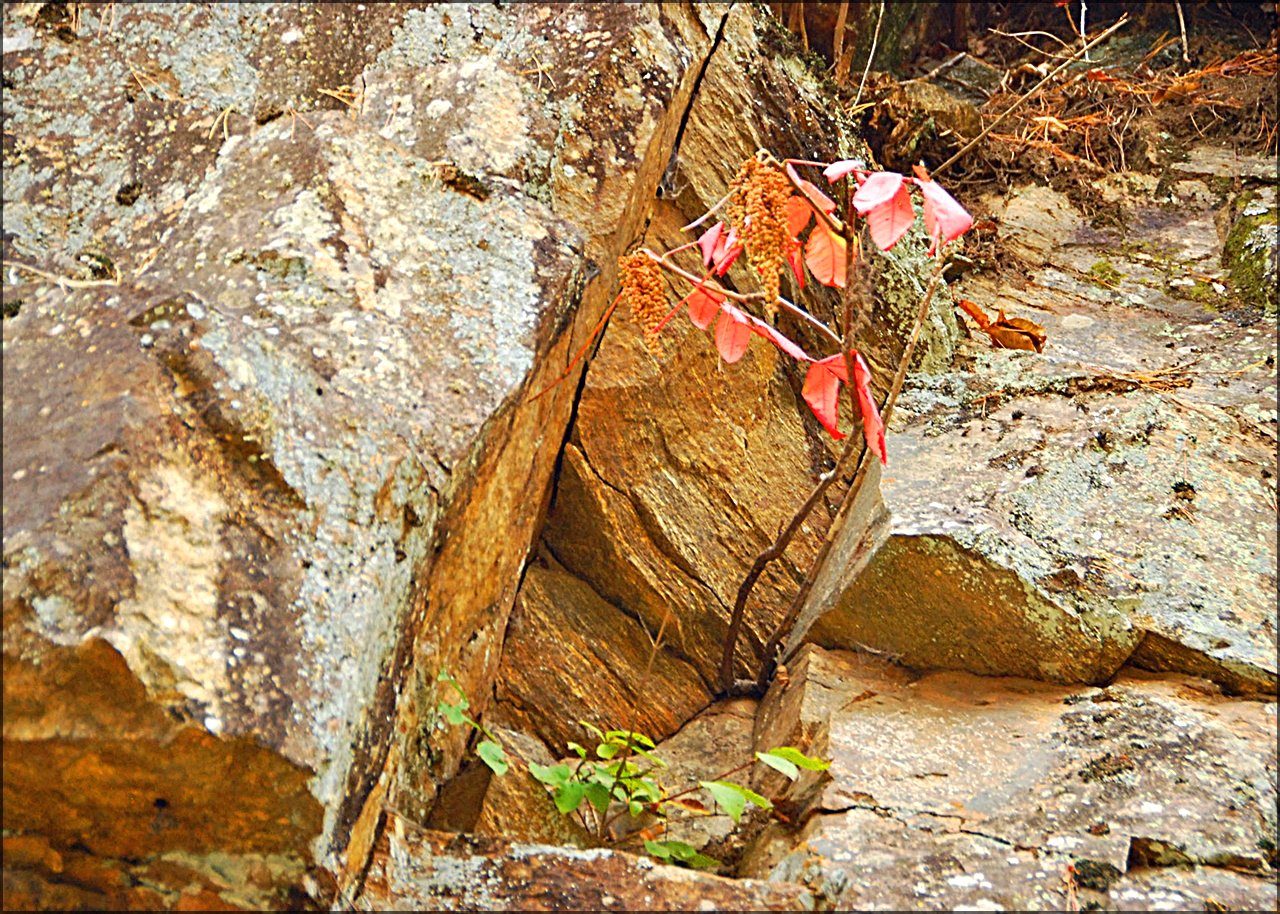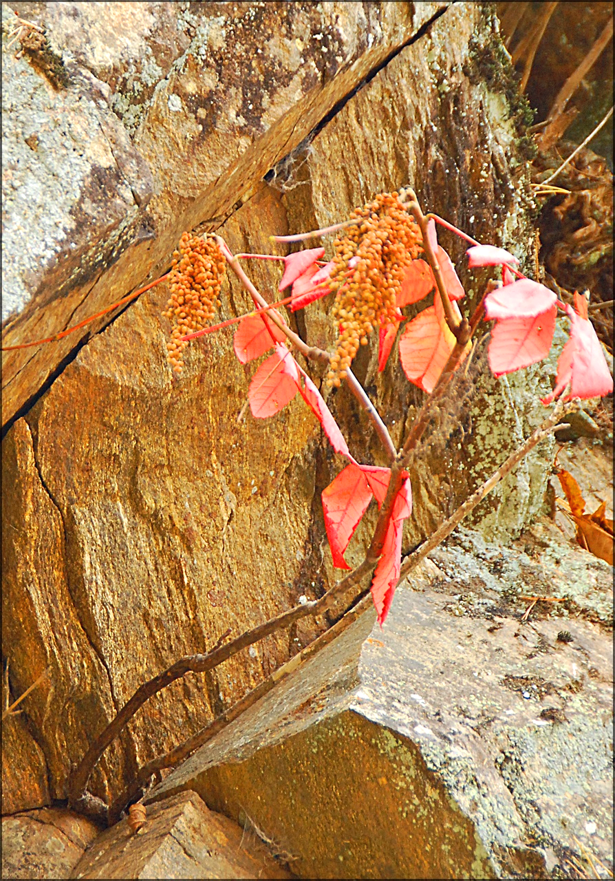 붉나무로 끈질긴 생명력으로 바위틈에 뿌리내리고 자라고 있는데