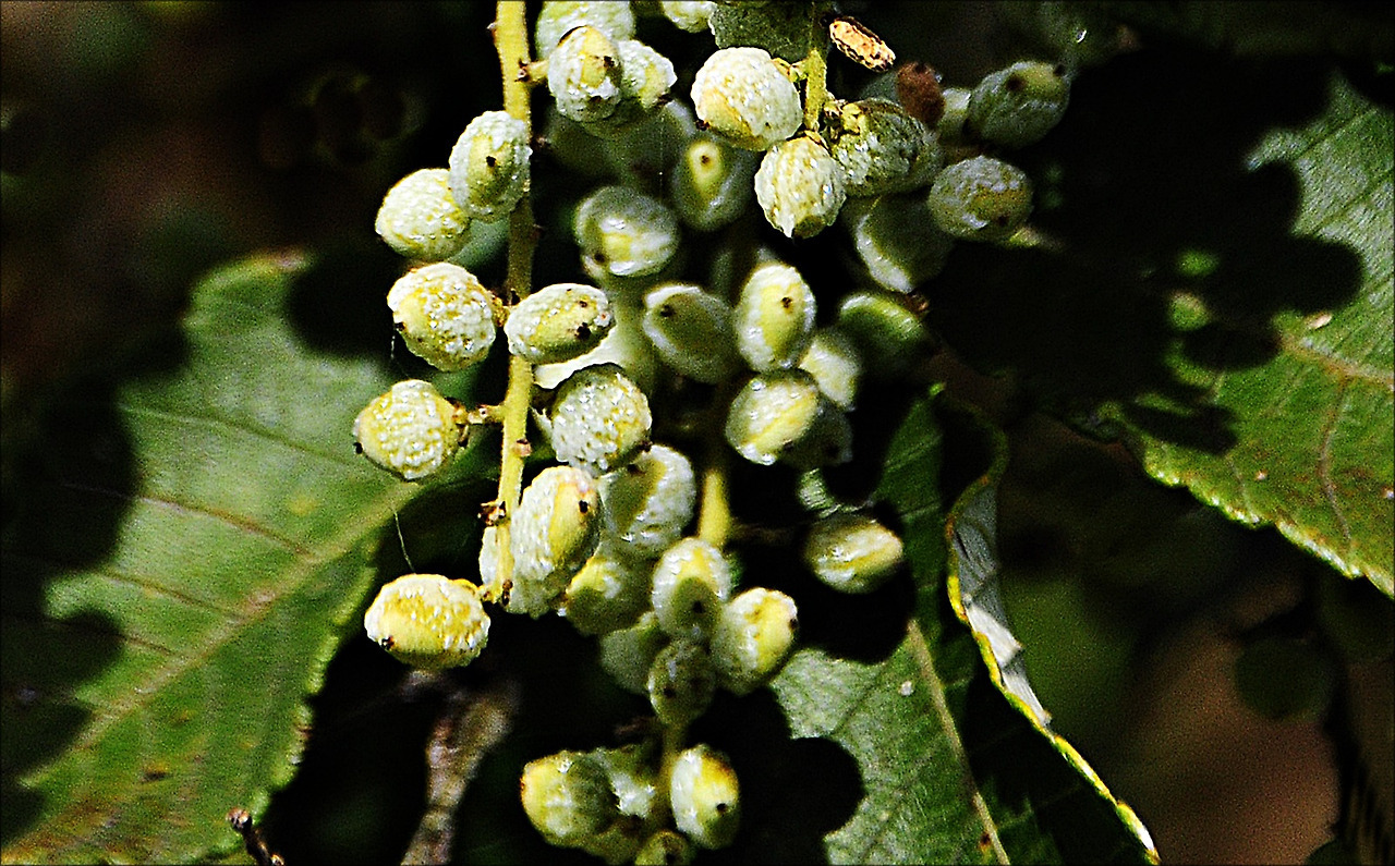 9월의 붉나무 수꽃으로 절정을 이룬다. 꽃은 암수딴그루로