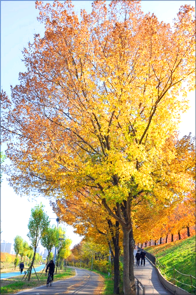 노란색으로 단풍 든 잎과 함께 어우러져 아름답다.